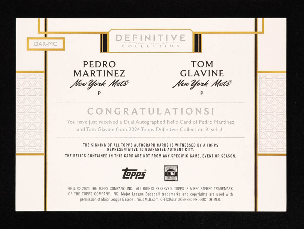 Pedro Martinez / Tom Glavine 2024 Topps Definitive Collection Dual Autograph Relics #DARMC #24/35