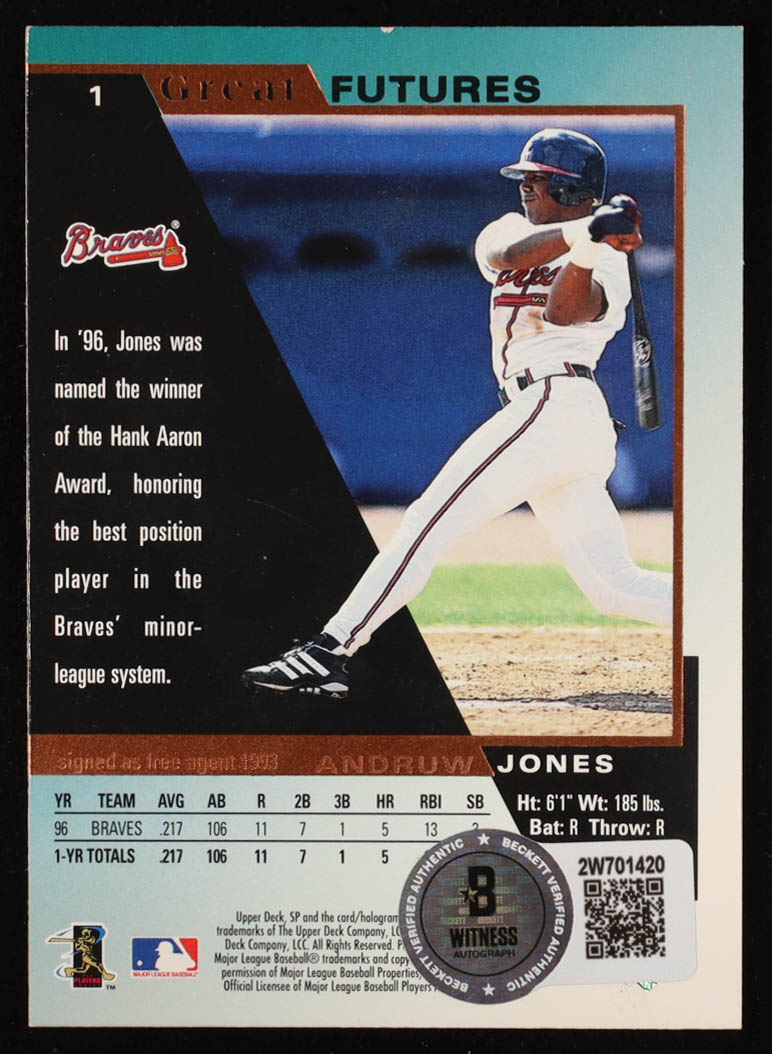 Card has been signed by Andruw Jones. Please see photos for more details regarding the condition of the card. (Atlanta Braves)
