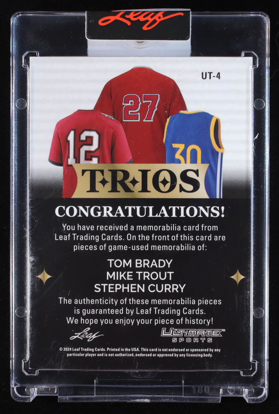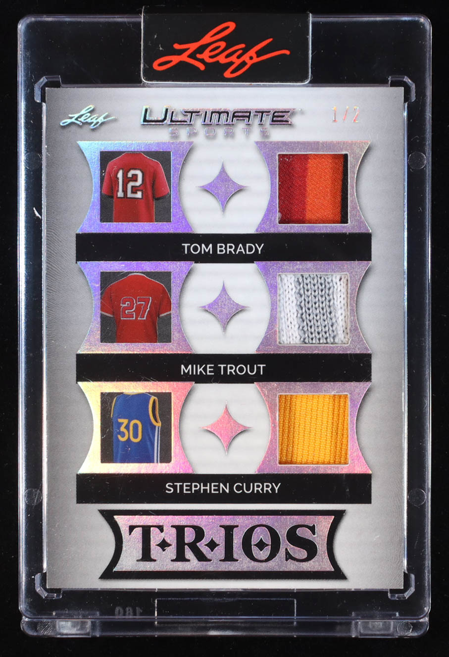 Tom Brady / Mike Trout / Stephen Curry 2024 Leaf Ultimate Sports Ultimate Trios Silver Spectrum #UT4 #1/2