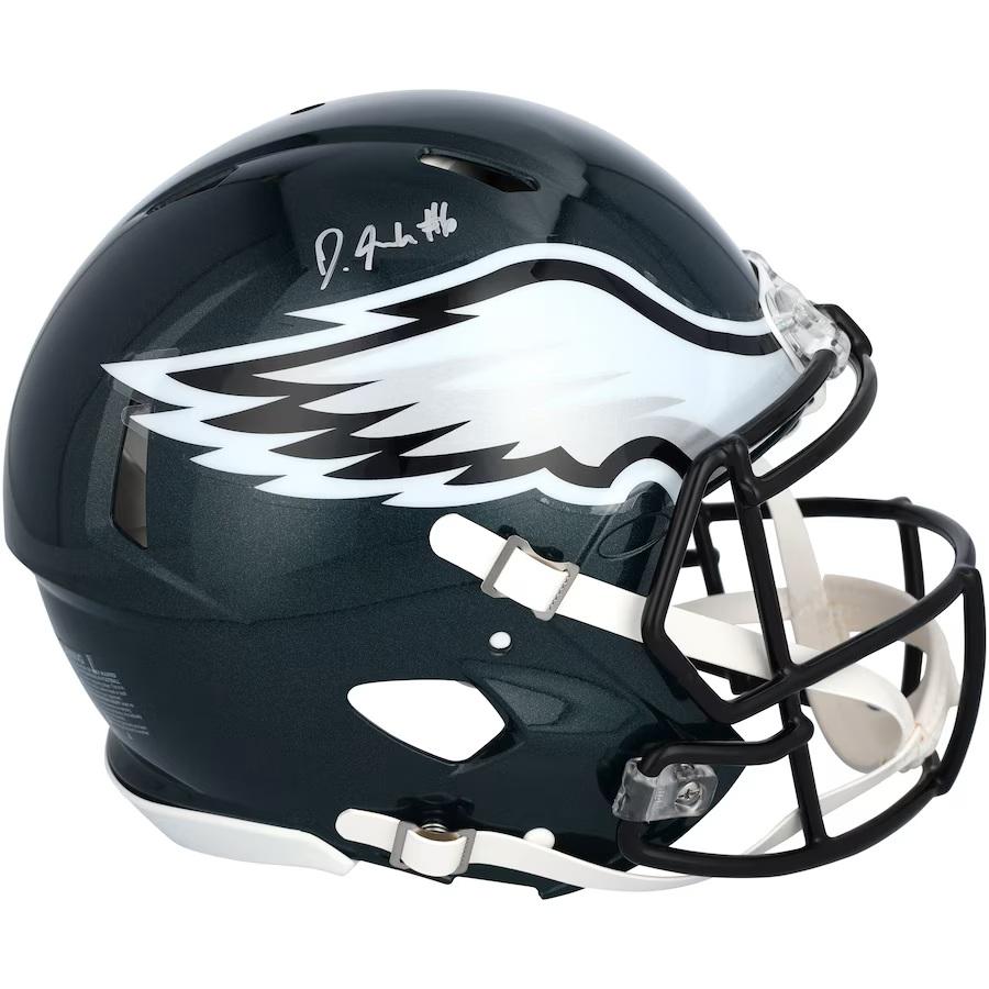 Riddell Philadelphia Eagles / Super Bowl LIX Champions logo full-size authentic on-field speed helmet. Hand-signed by DeVonta Smith.