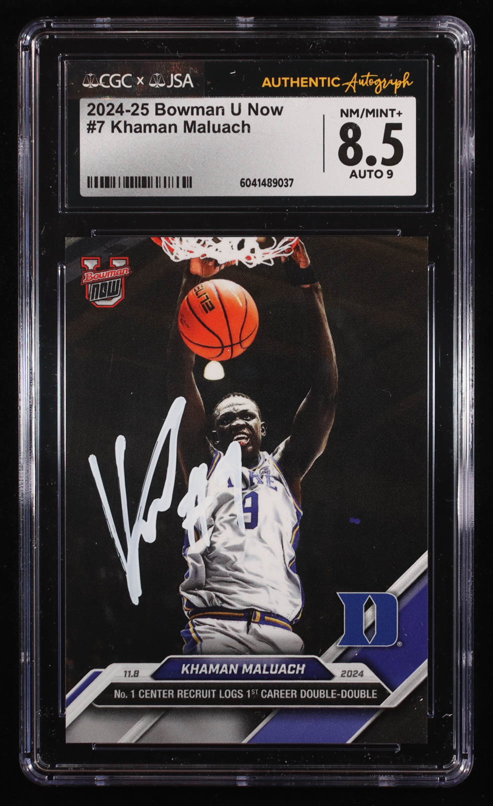 Khaman Maluach Signed 2024-25 Bowman University Now #7 RC (CGC 8.5 | Autograph Grade 9)