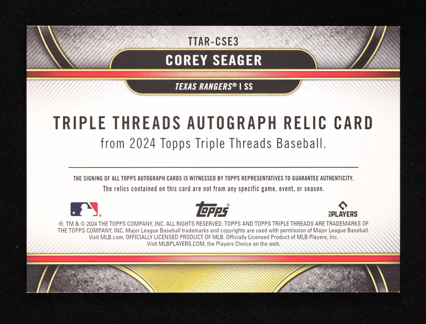 Corey Seager 2024 Topps Triple Threads Autograph Relics Emerald #TTARCSE3 #15/18