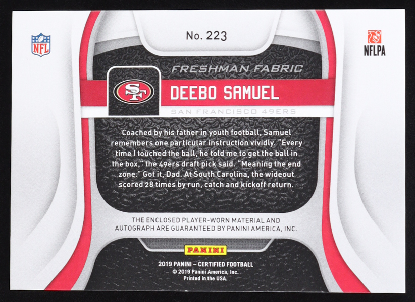 Deebo Samuel 2019 Certified Mirror Blue #223 JSY AU RC #76/99