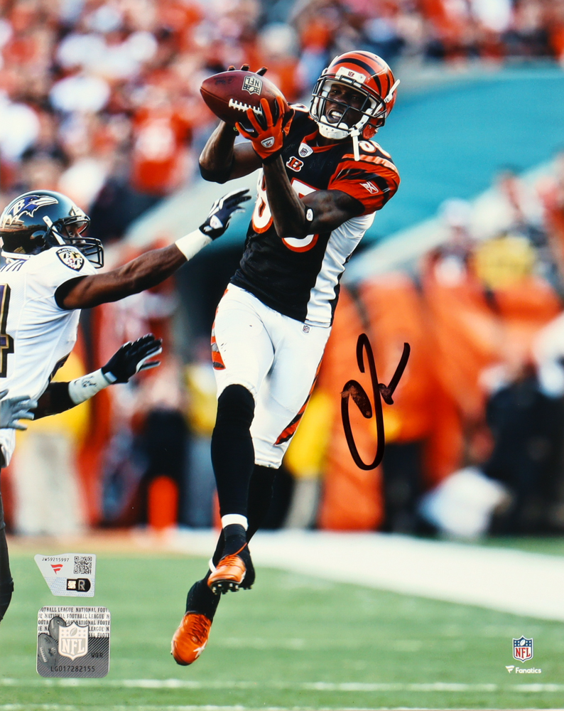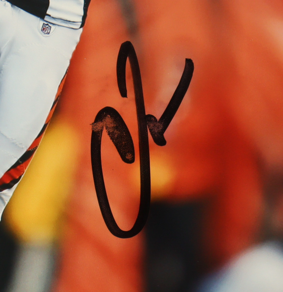Photo measures 8" x 10" in size and has been hand-signed by Chad Johnson (Cincinnati Bengals). Please note, the autograph smudged.