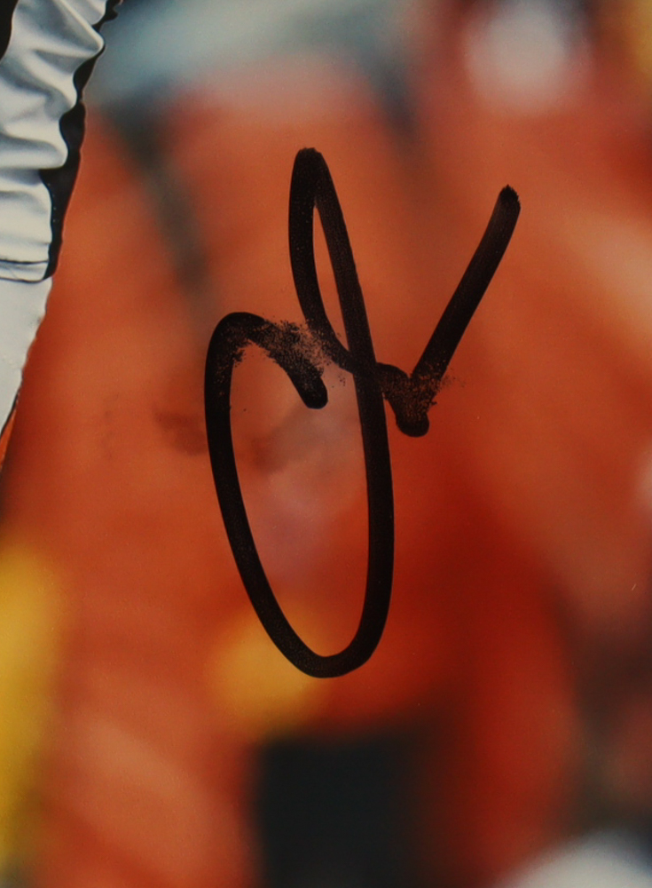 Photo measures 8" x 10" in size and has been hand-signed by Chad Johnson (Cincinnati Bengals). Please note, the autograph smudged.