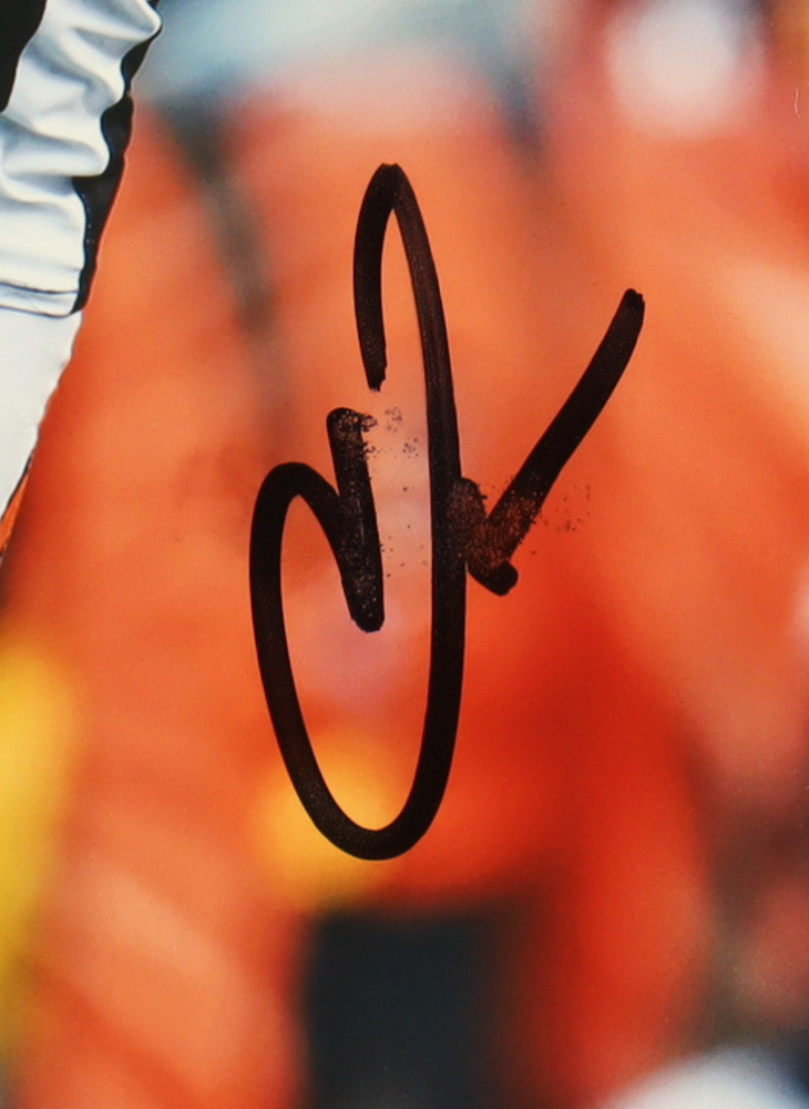 Photo measures 8" x 10" in size and has been hand-signed by Chad Johnson (Cincinnati Bengals). Please note, the autograph smudged.