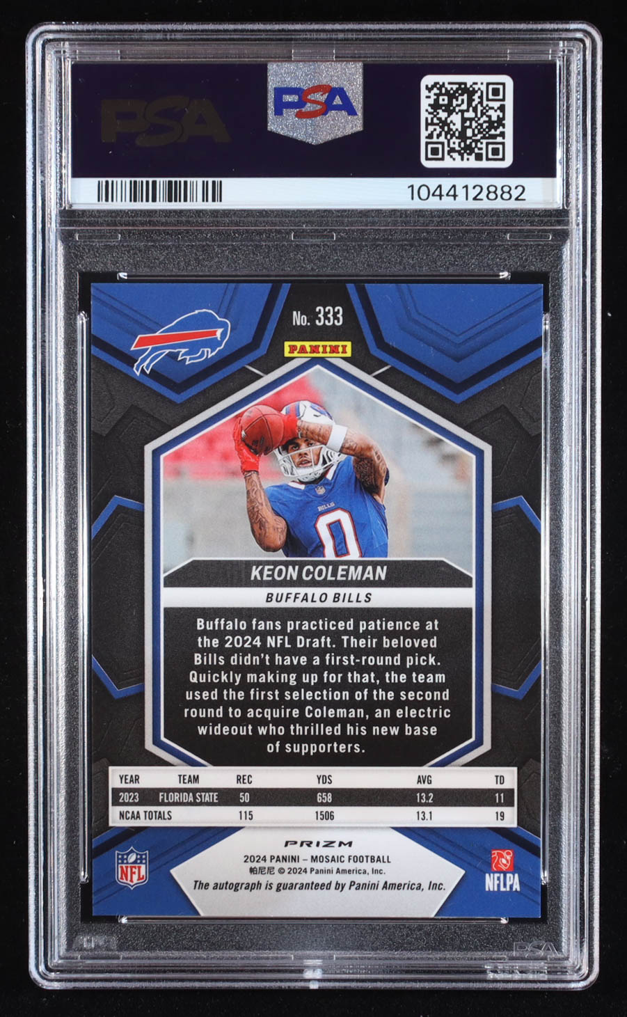 Keon Coleman 2024 Panini Mosaic Rookie Autographs Mosaic #333 RC (PSA 9)