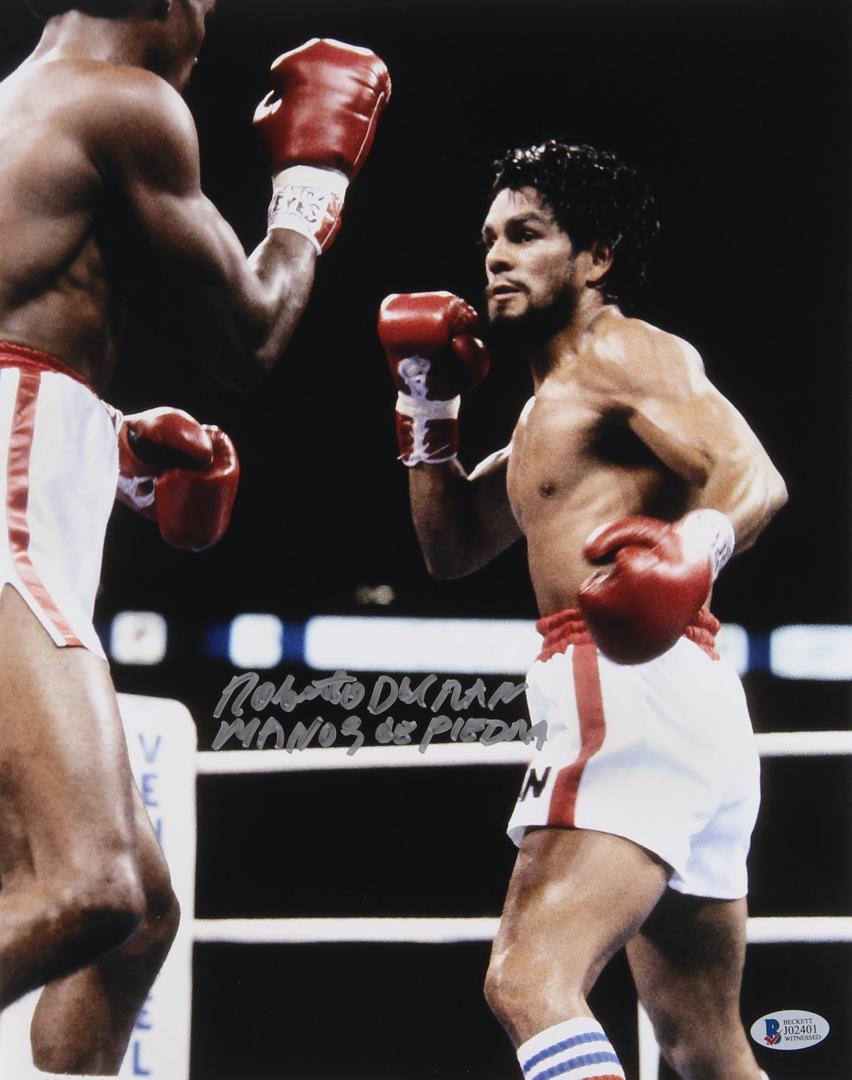 Roberto Duran Signed 11x14 Photo Inscribed "Manos de Piedra" (Beckett COA)