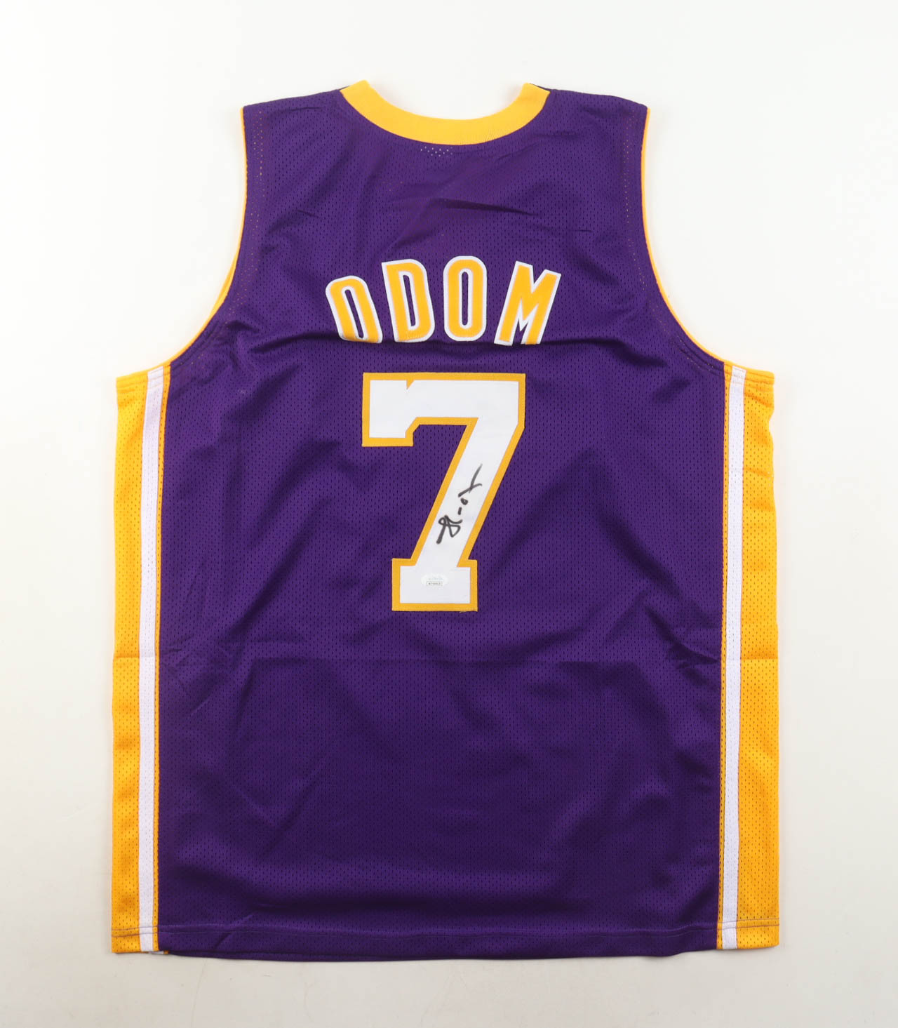 Custom jersey with everything sewn on, size L. Hand-signed by Lamar Odom.