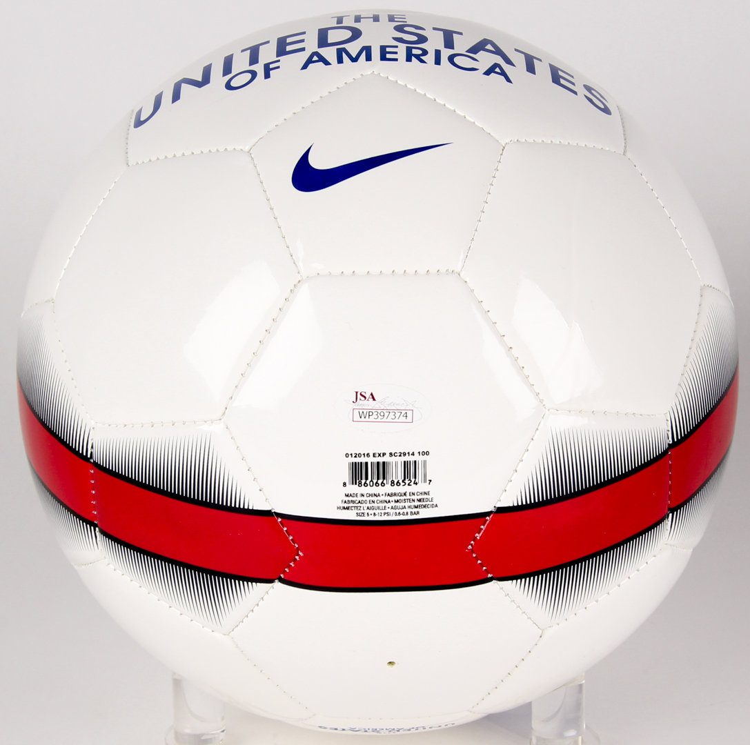 Nike Team USA soccer ball has been hand-signed and inscribed in black felt-tip pen by Christen Press (USA).