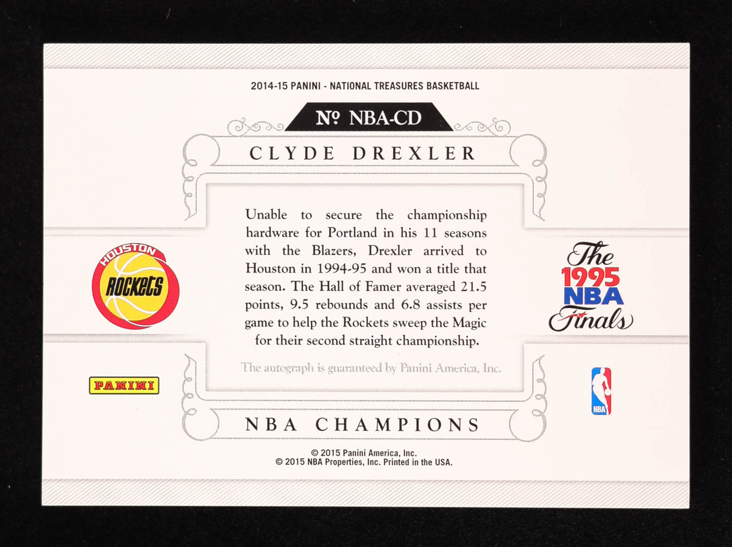 Clyde Drexler 2014-15 Panini National Treasures NBA Champions Signatures #NBACD #33/49