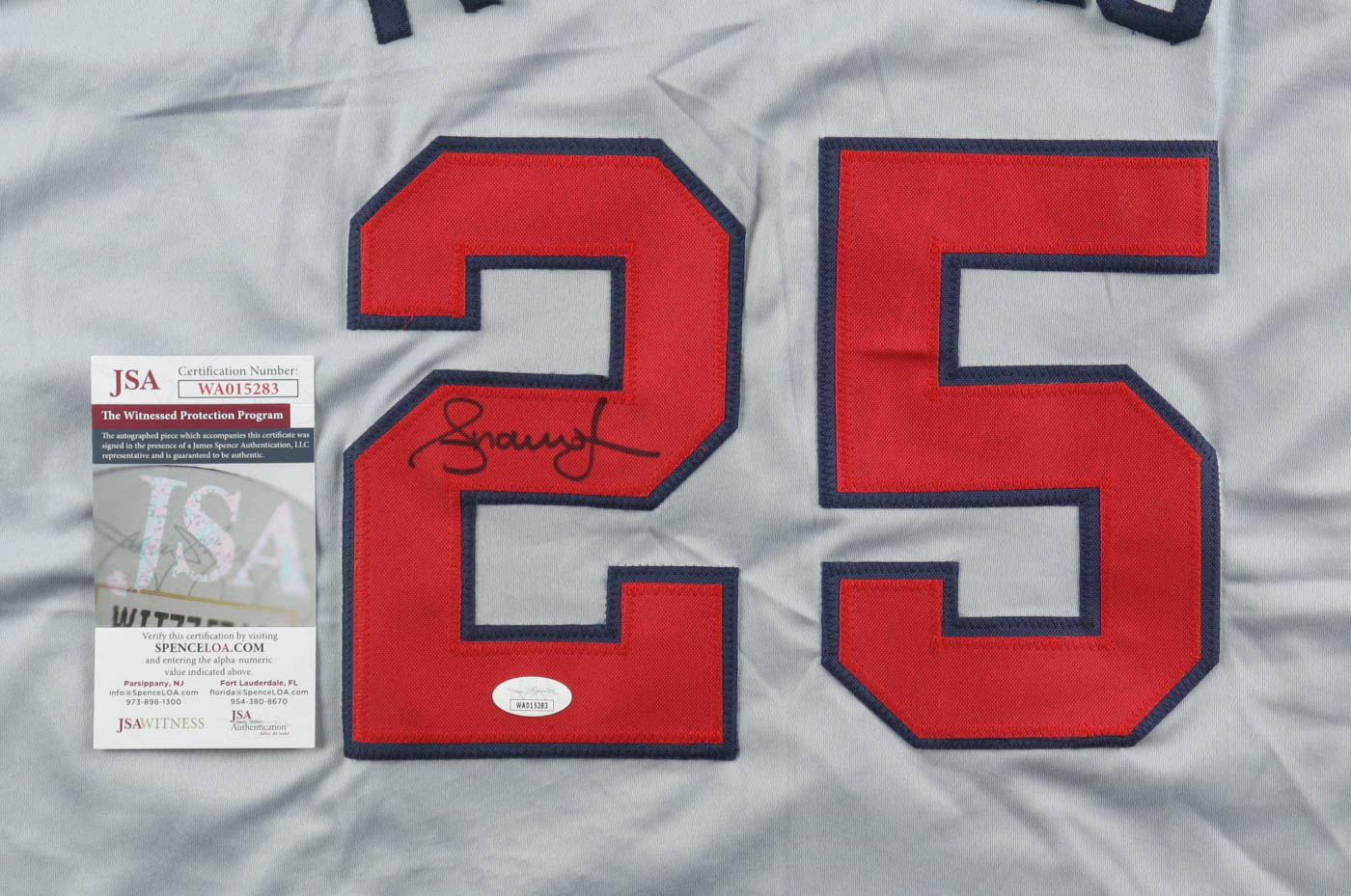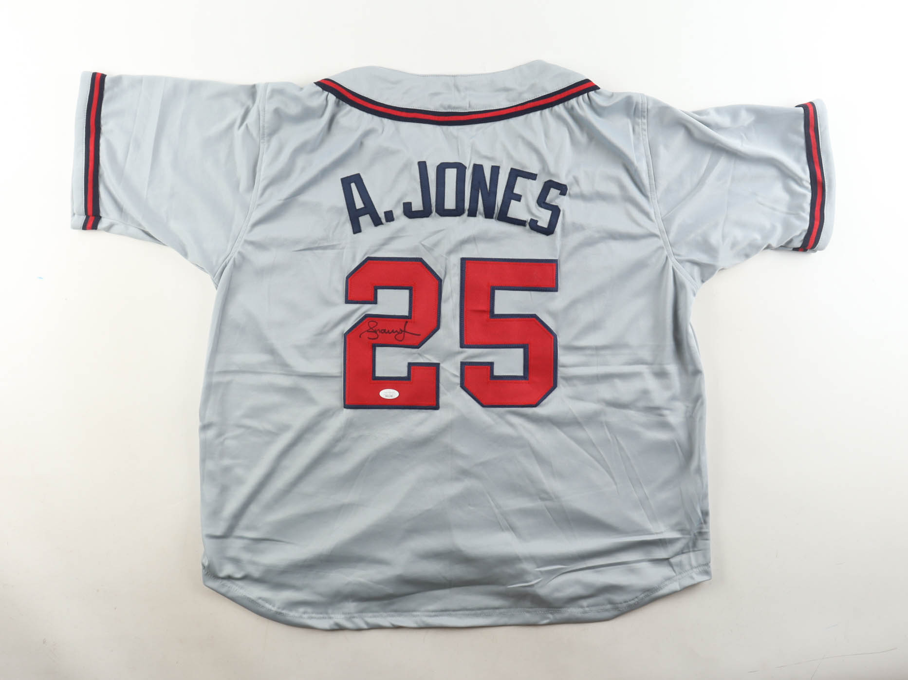 Custom jersey with everything sewn on, size XL. Hand-signed by Andruw Jones.