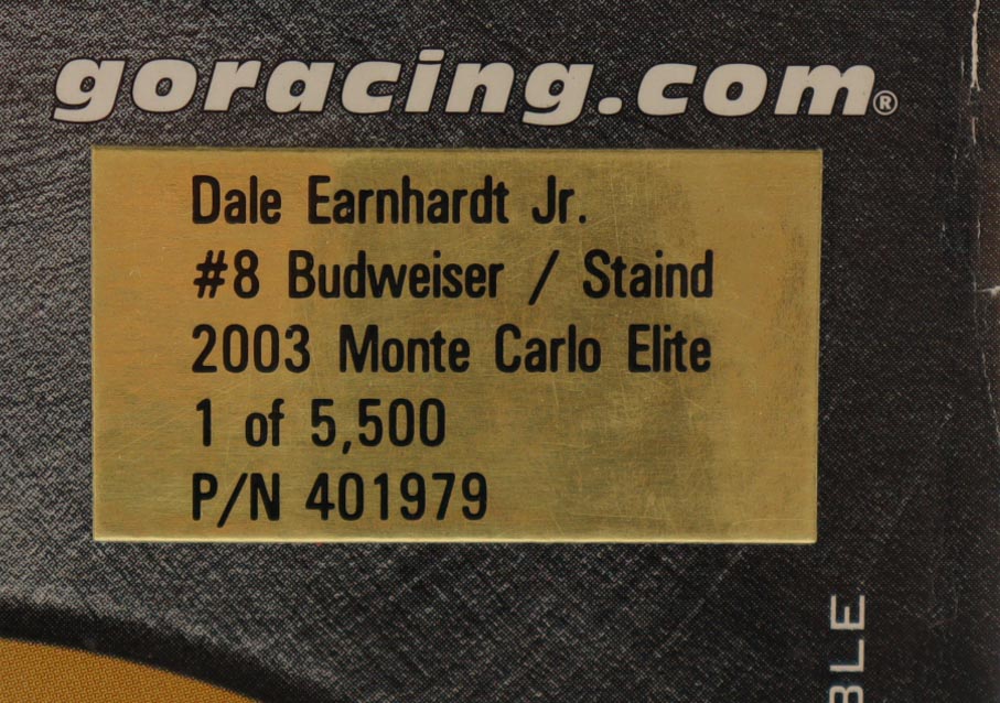Dale Earnhardt Jr. Signed 2003 #8 Budweiser/ Staind Monte Carlo Elite 1:24 Diecast Car (JR Motorsports)