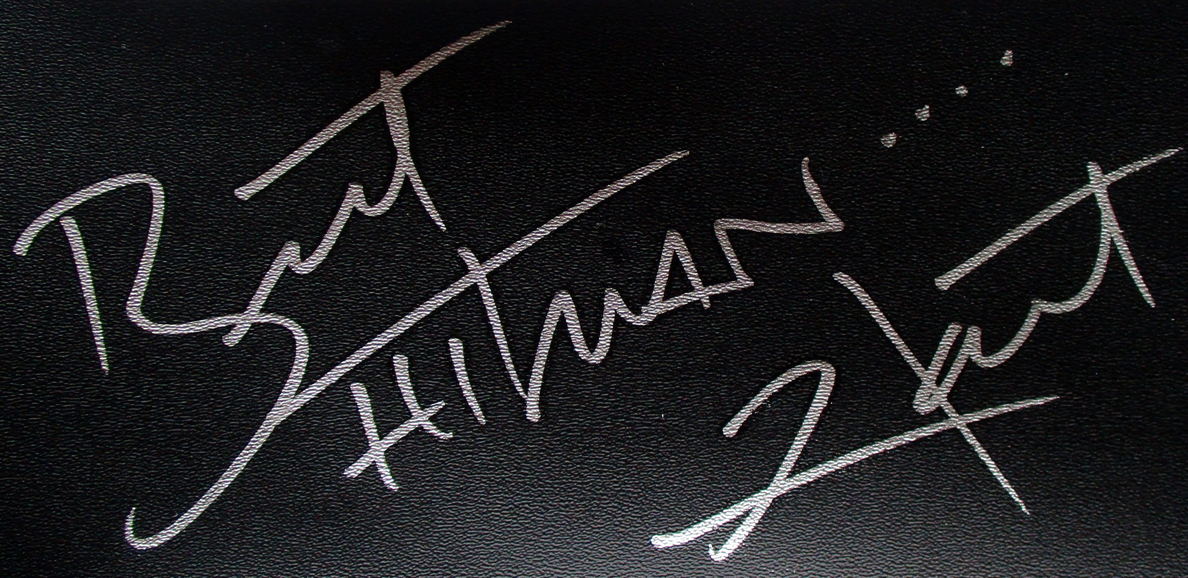 Replica toy WWE Winged Eagle Championship Belt has been hand-signed in silver paint pen by Bret Hart.