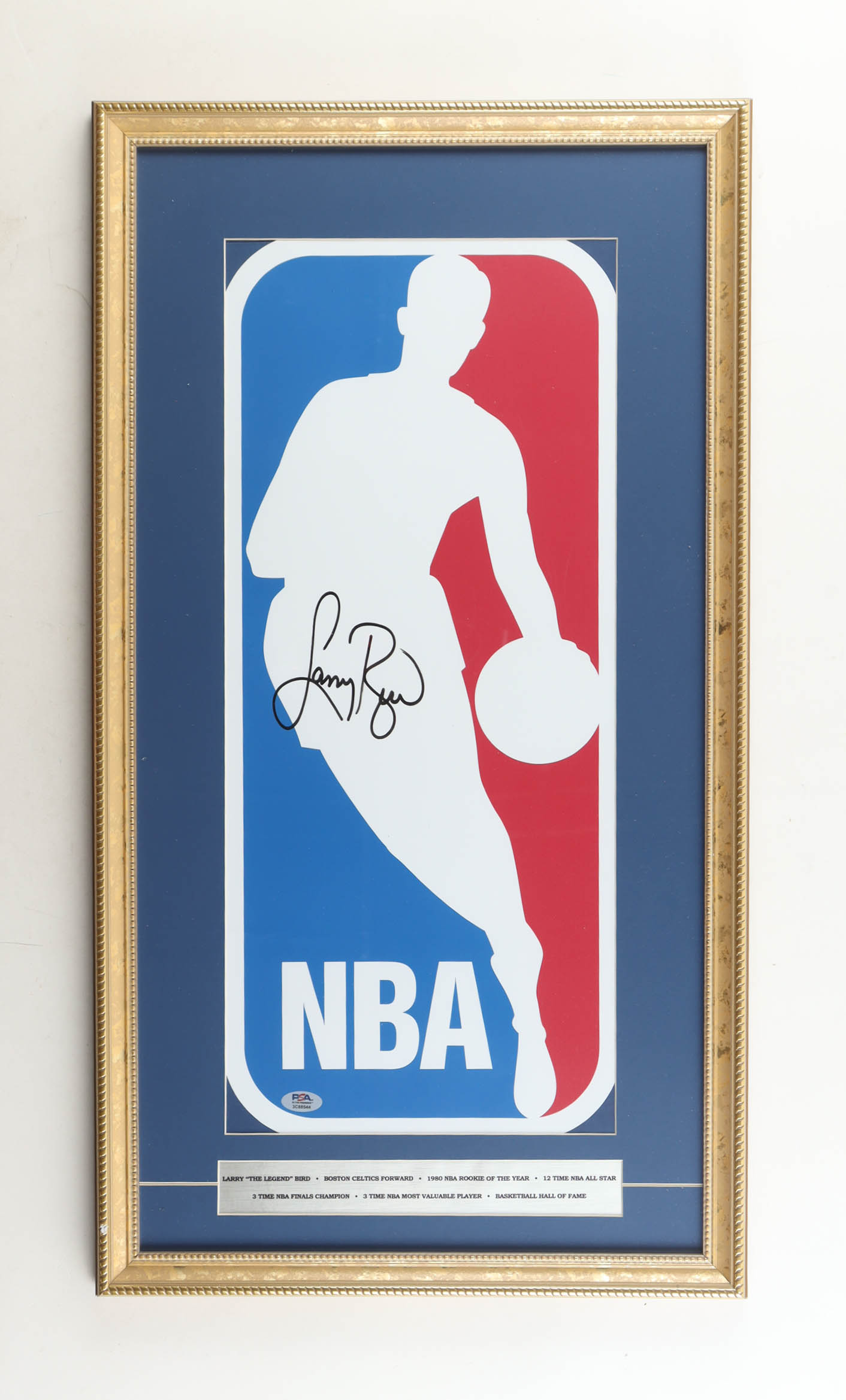 Larry Bird Signed NBA Logo Custom Framed Photo Display (PSA)