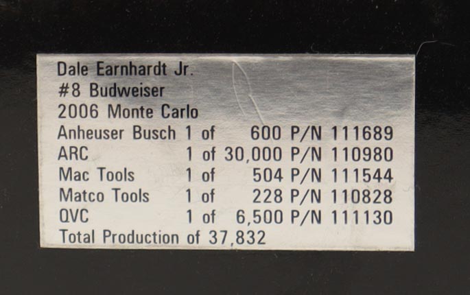 Dale Earnhardt Jr. Signed 2006 #8 Budweiser Monte Carlo 1:24 Diecast Car (JR Motorsports)