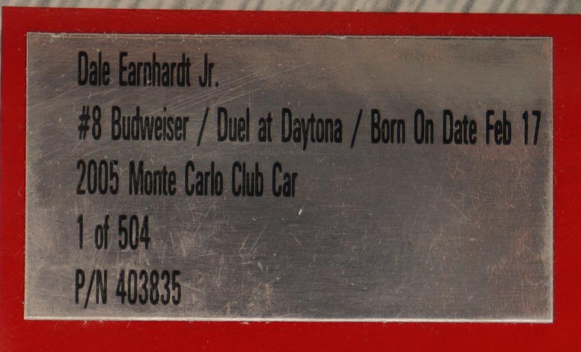 Dale Earnhardt Jr. Signed 2005 #8 Budweiser / Dual At Daytona / Born On Date Feb 17 Monte Carlo Club Car 1:24 Diecast Car (JR Motorsports)