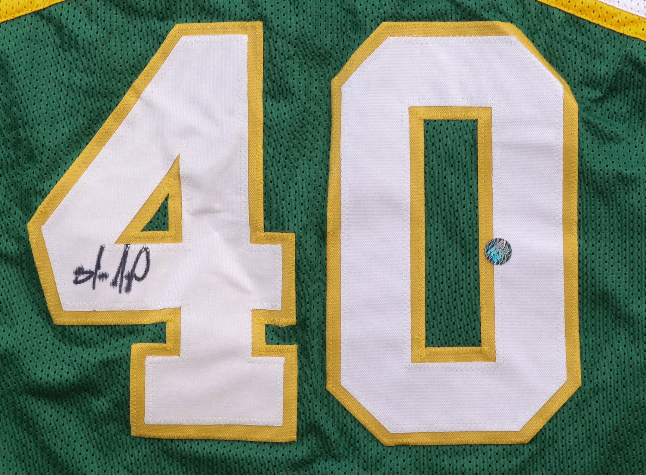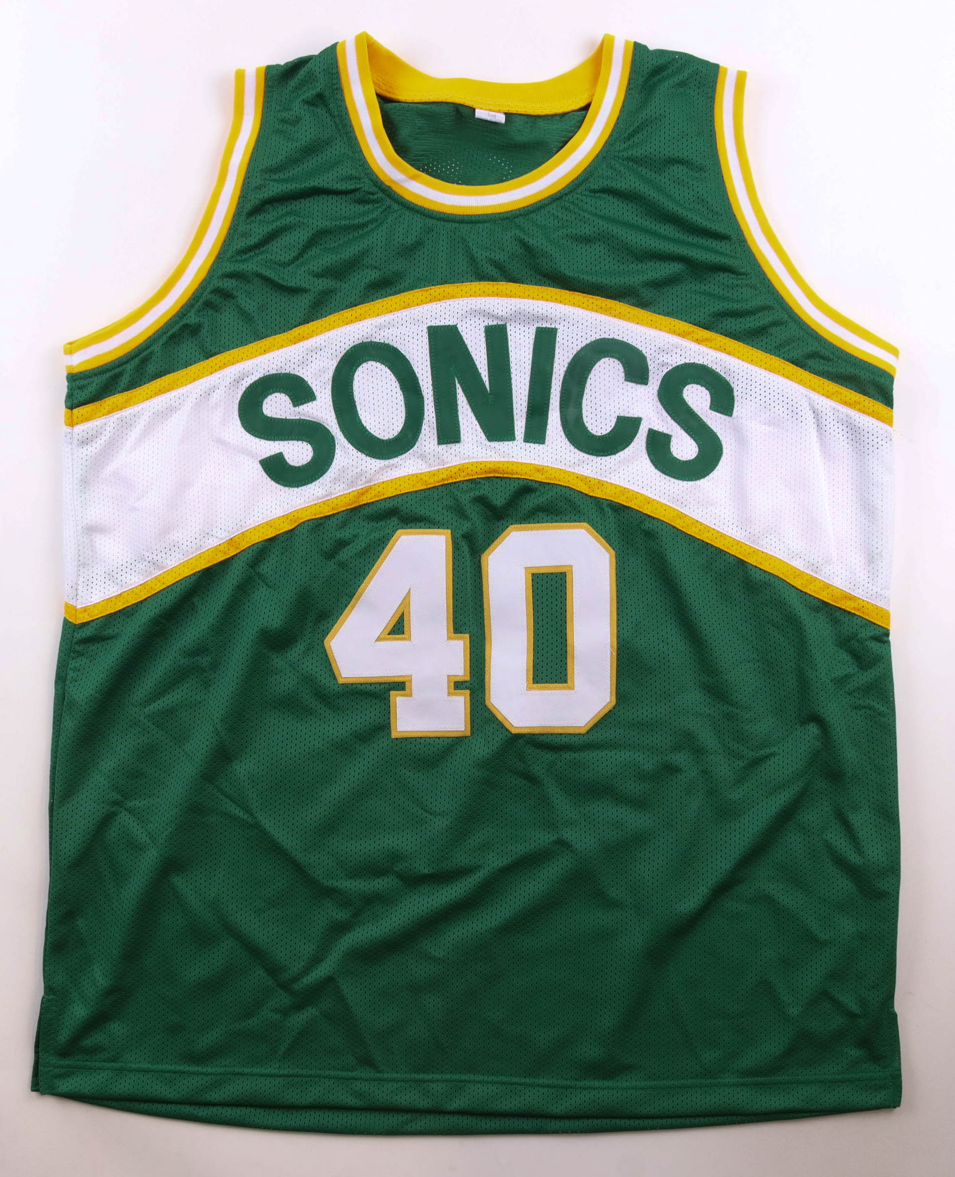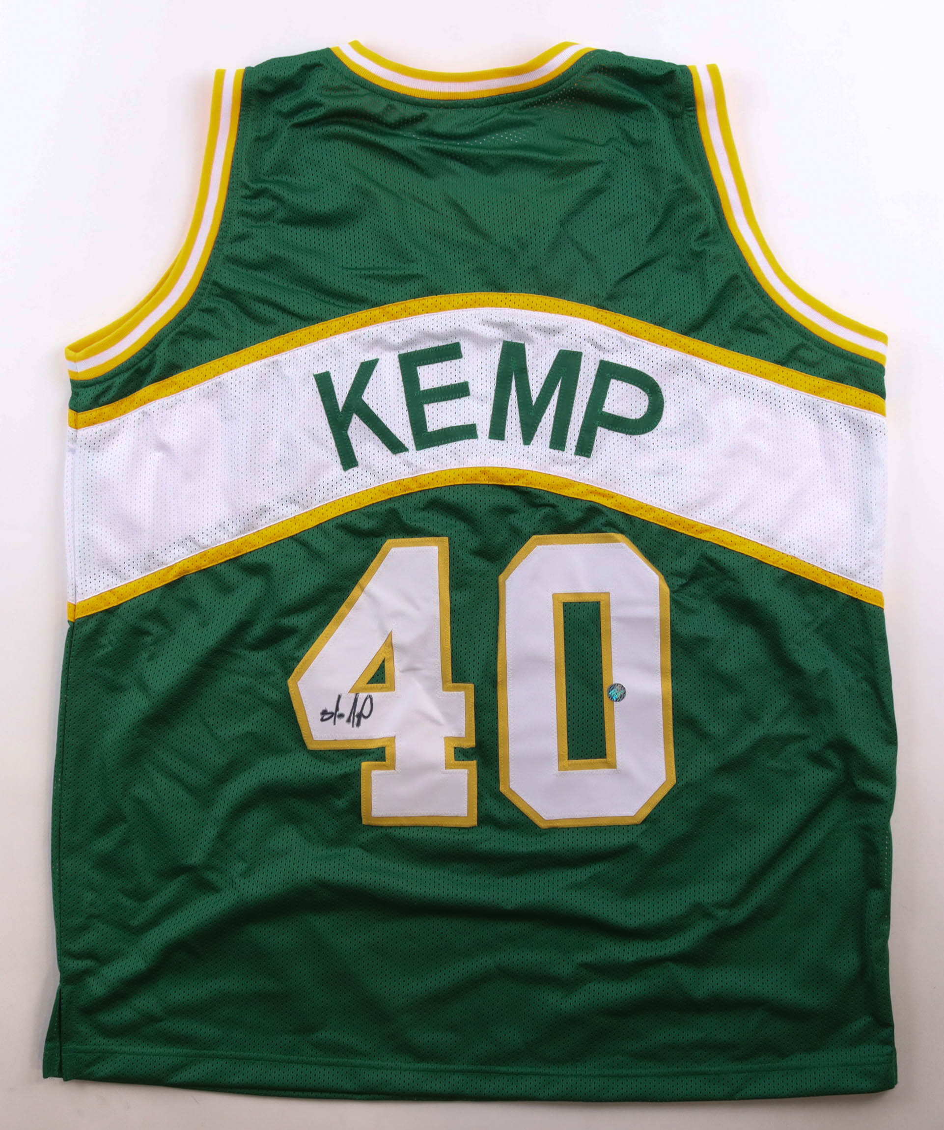 Custom jersey. Everything is sewn on, size XL. Hand-signed by Shawn Kemp. Please note, the signature has bled.