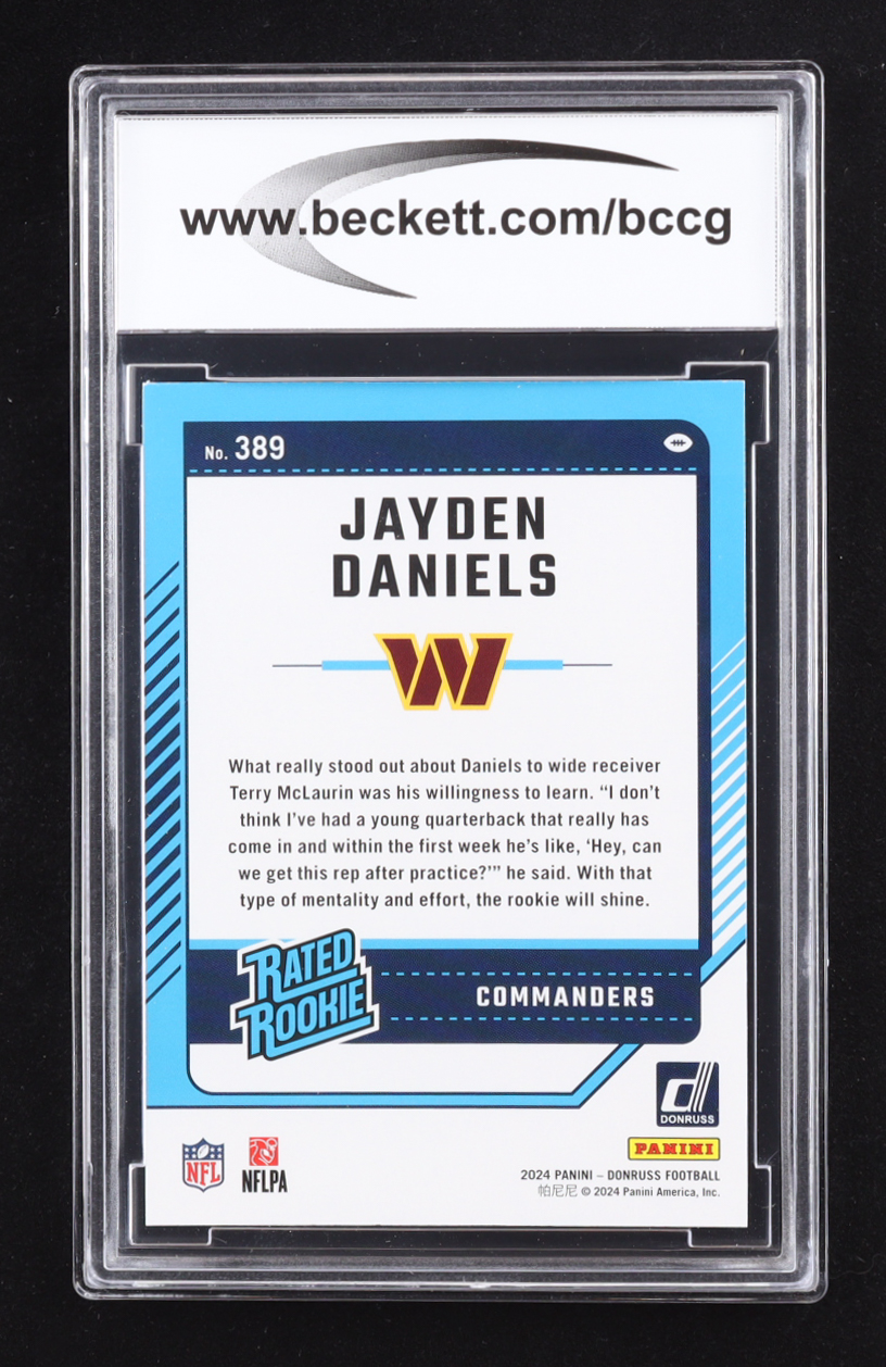 Jayden Daniels 2024 Donruss Rated Rookie #389 RC (BCCG 9)