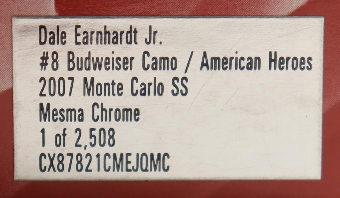 Dale Earnhardt Jr. Signed 2007 #8 Budweiser Camo / Ameican Heroes Monte Carlo SS Mesma Chrome 1:24 Diecast Car (JR Motorsports)