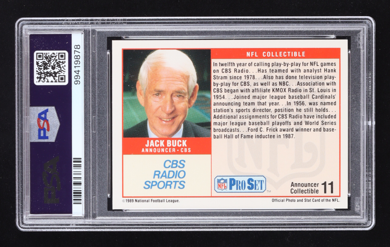 Jack Buck 1989 Pro Set Announcers #11 (PSA 10)