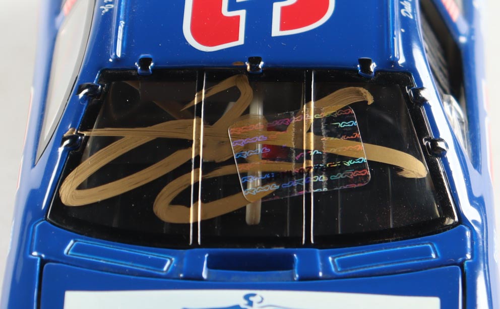 NASCAR premium die-cast car has been hand-signed on the windshield by Dale Earnhardt Jr.
