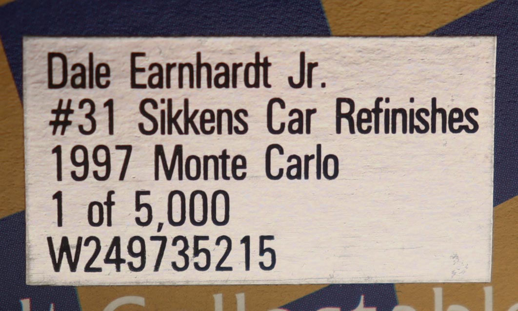 Dale Earnhardt Jr. Signed 1997 #31 Sikkens Car Refinishes Monte Carlo 1:24 Diecast Car (JR Motorsports)