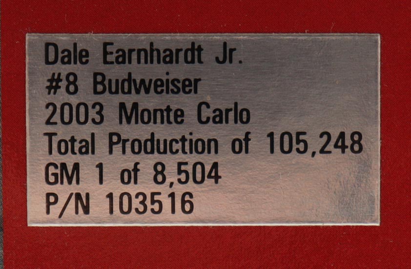 Dale Earnhardt Jr. Signed 2003 #8 Budweiser Monte Carlo 1:24 Diecast Car (JR Motorsports)