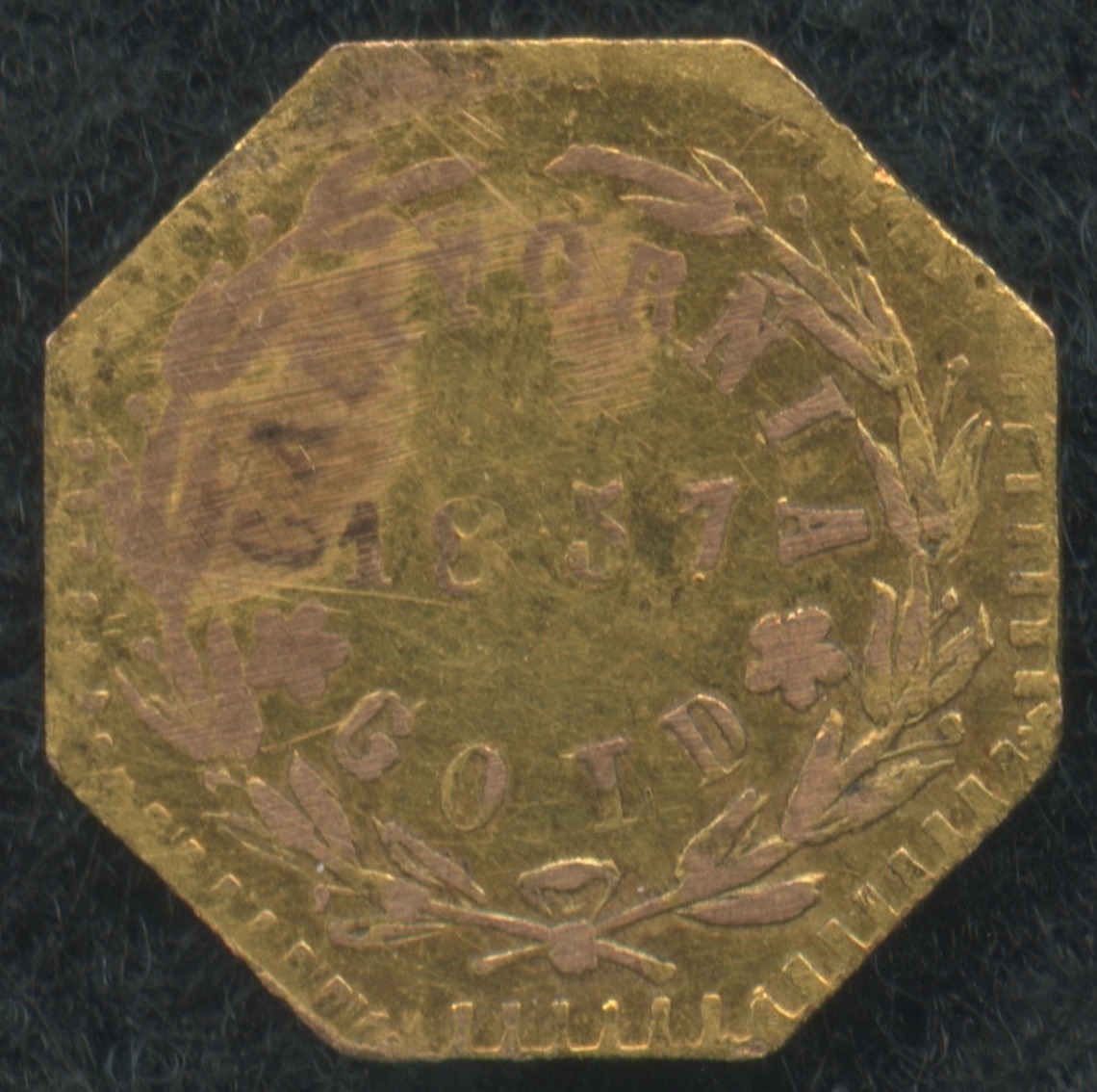 1857 California Gold Dated Fractional Octagonal Gold Coin