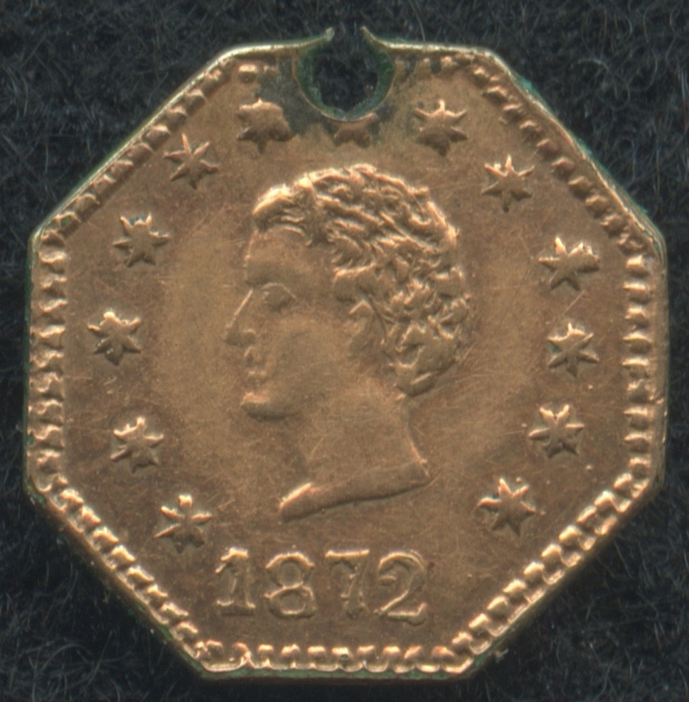1872 California Gold Dated Fractional Octagonal Gold Coin