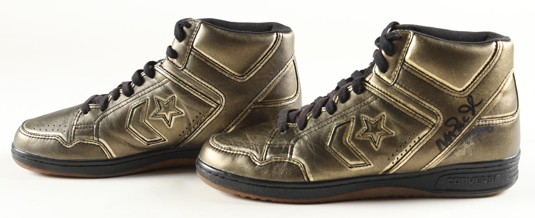 Set of (2) Converse All Star White Leather Basketball Shoes have been hand-signed by Magic Johnson (Los Angeles Lakers, HOF) and Larry Bird (Boston Celtics, HOF). Please note that the display case is included in the listing as shown above.