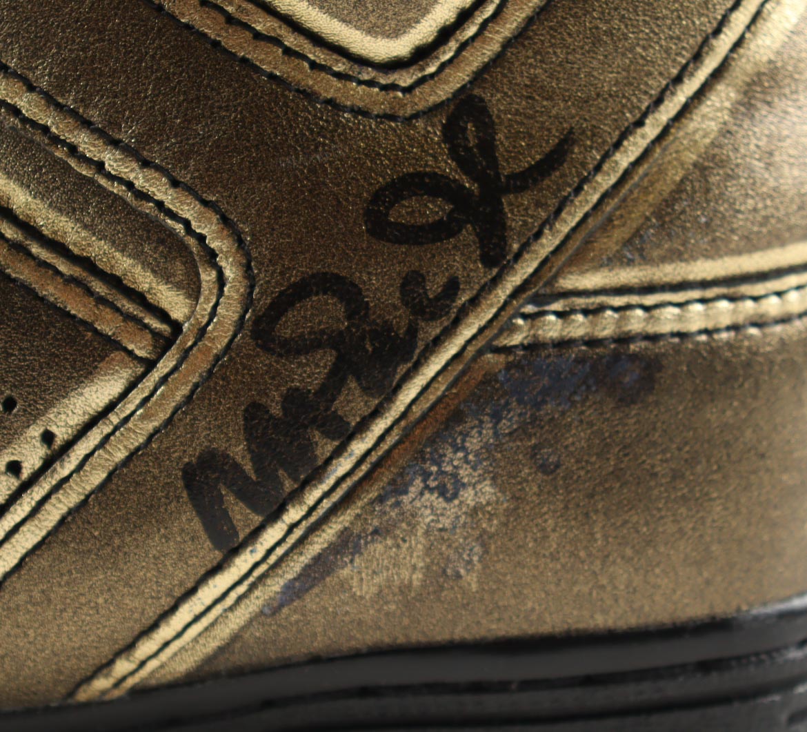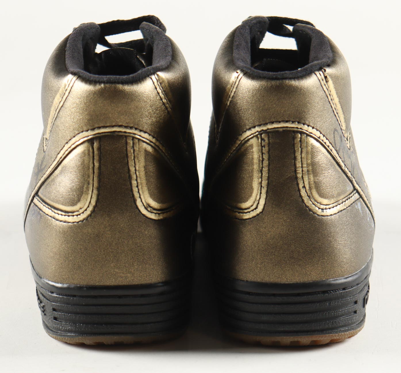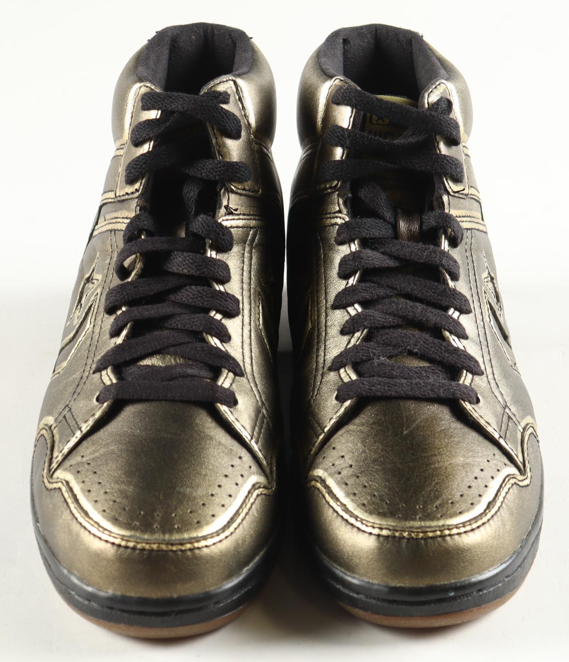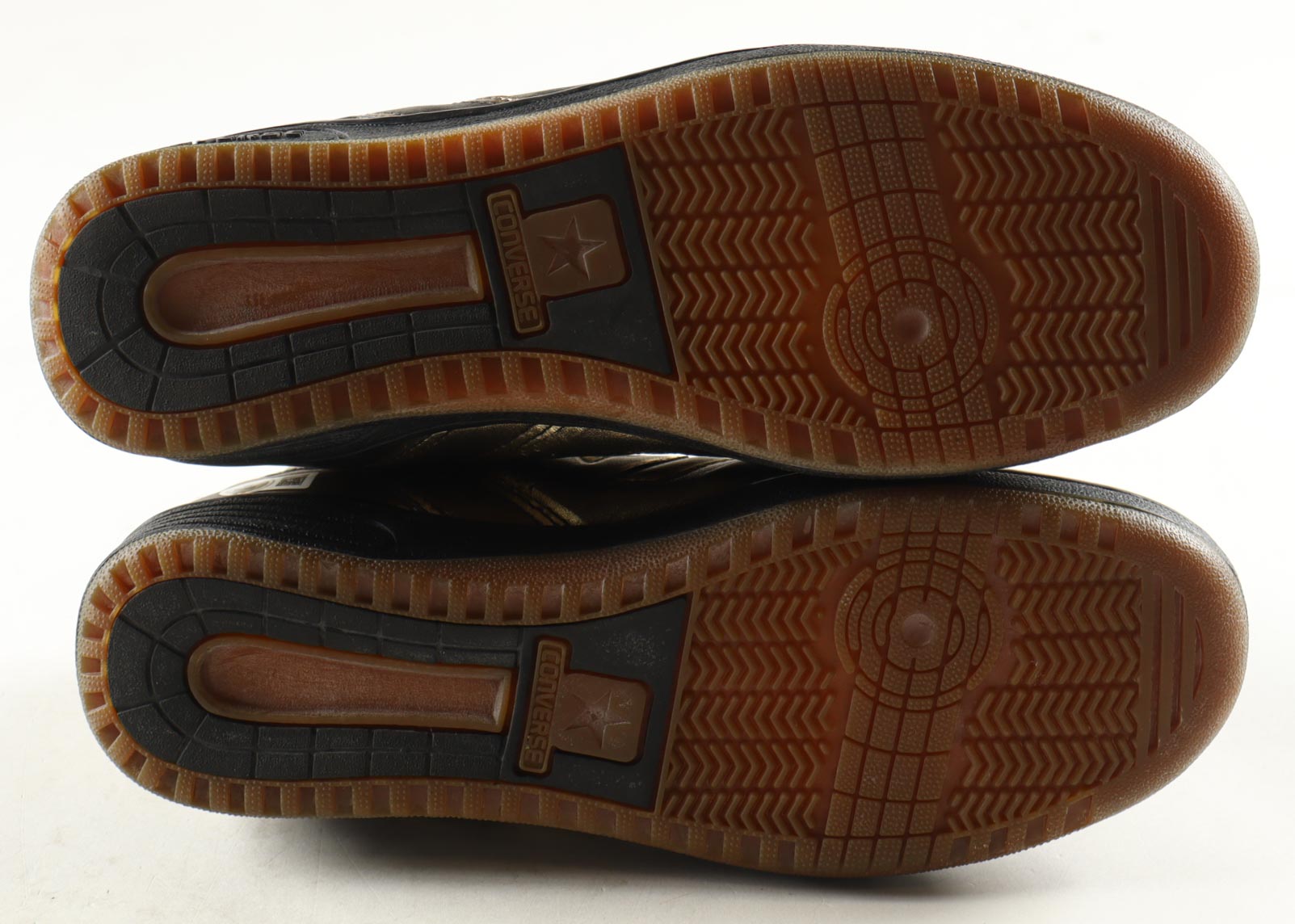 Magic Johnson & Larry Bird Signed Set of (2) Converse All Star Gold Leather Basketball Shoes with Display Case (PSA)