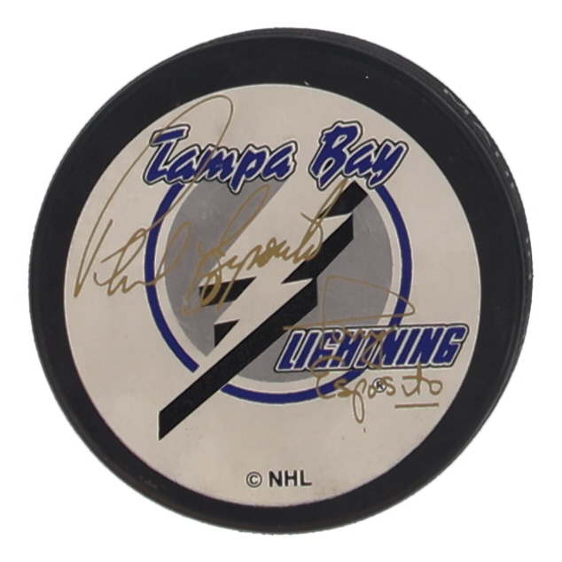 Tampa Bay Lightning Logo Hockey Puck. Hand-signed by Phil Esposito (HOF).