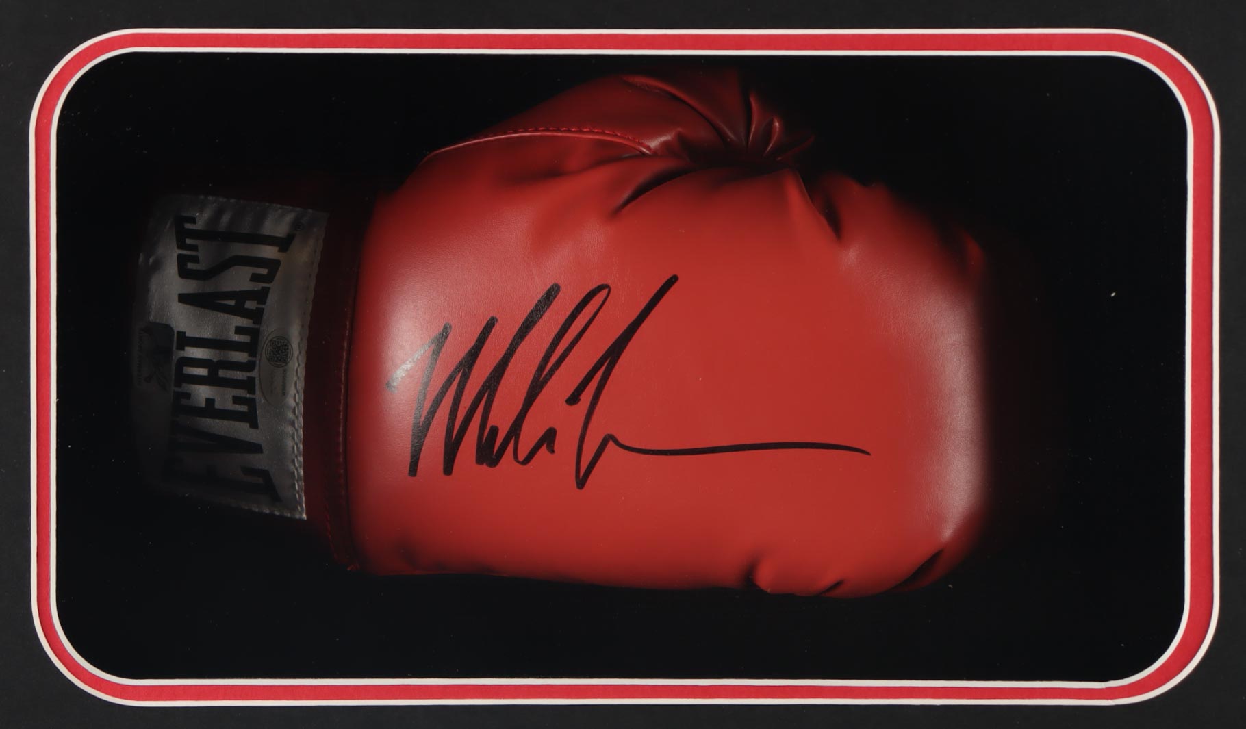 Shadowbox measures approximately 22.5" x 26.5" x 6.5" in size and features an Everlast boxing glove that has been hand-signed by Mike Tyson (HOF). Please note, there is scuffing on the display and on the autograph.