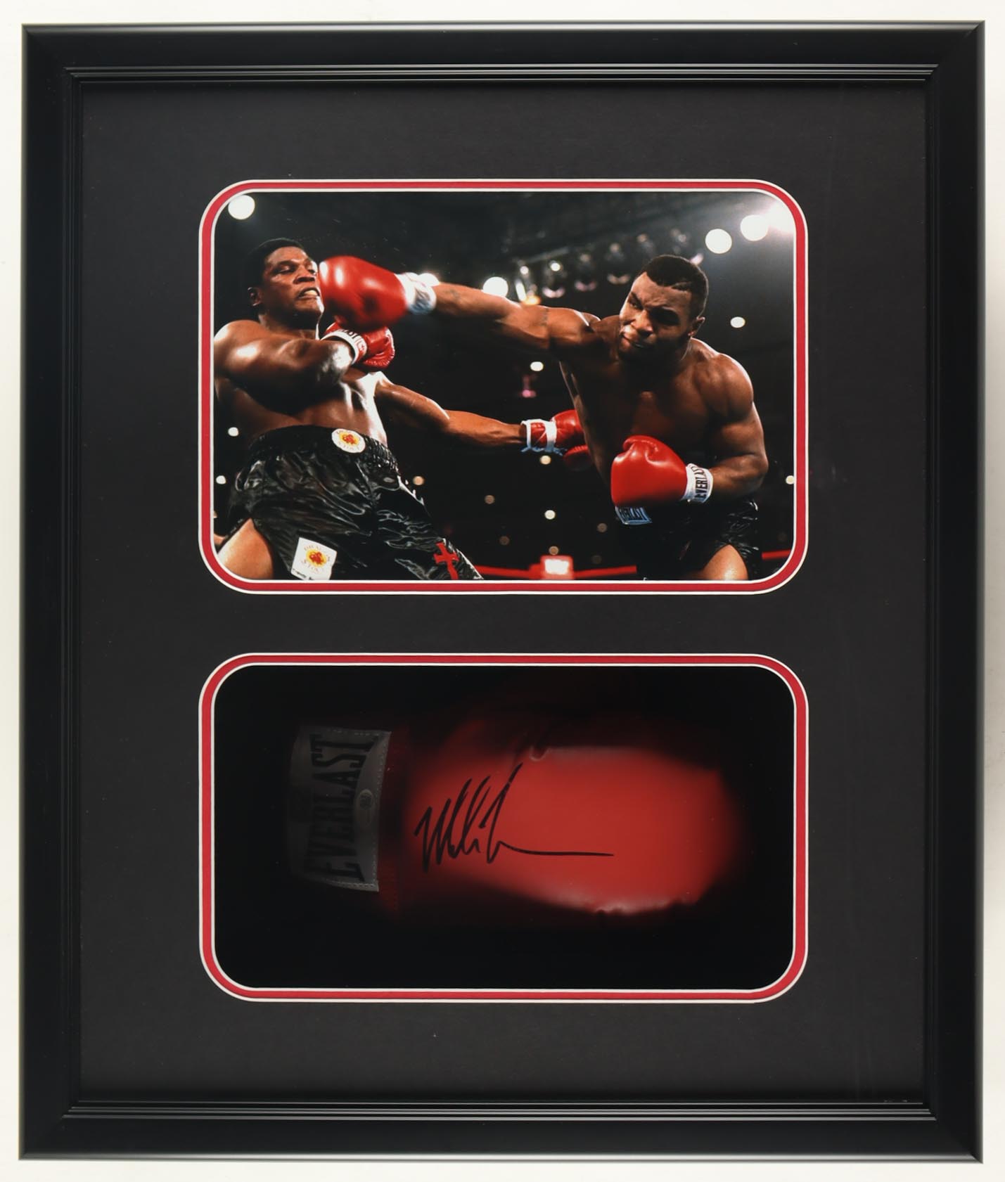 Shadowbox measures approximately 22.5" x 26.5" x 6.5" in size and features an Everlast boxing glove that has been hand-signed by Mike Tyson (HOF). Please note, there is scuffing on the display and on the autograph.