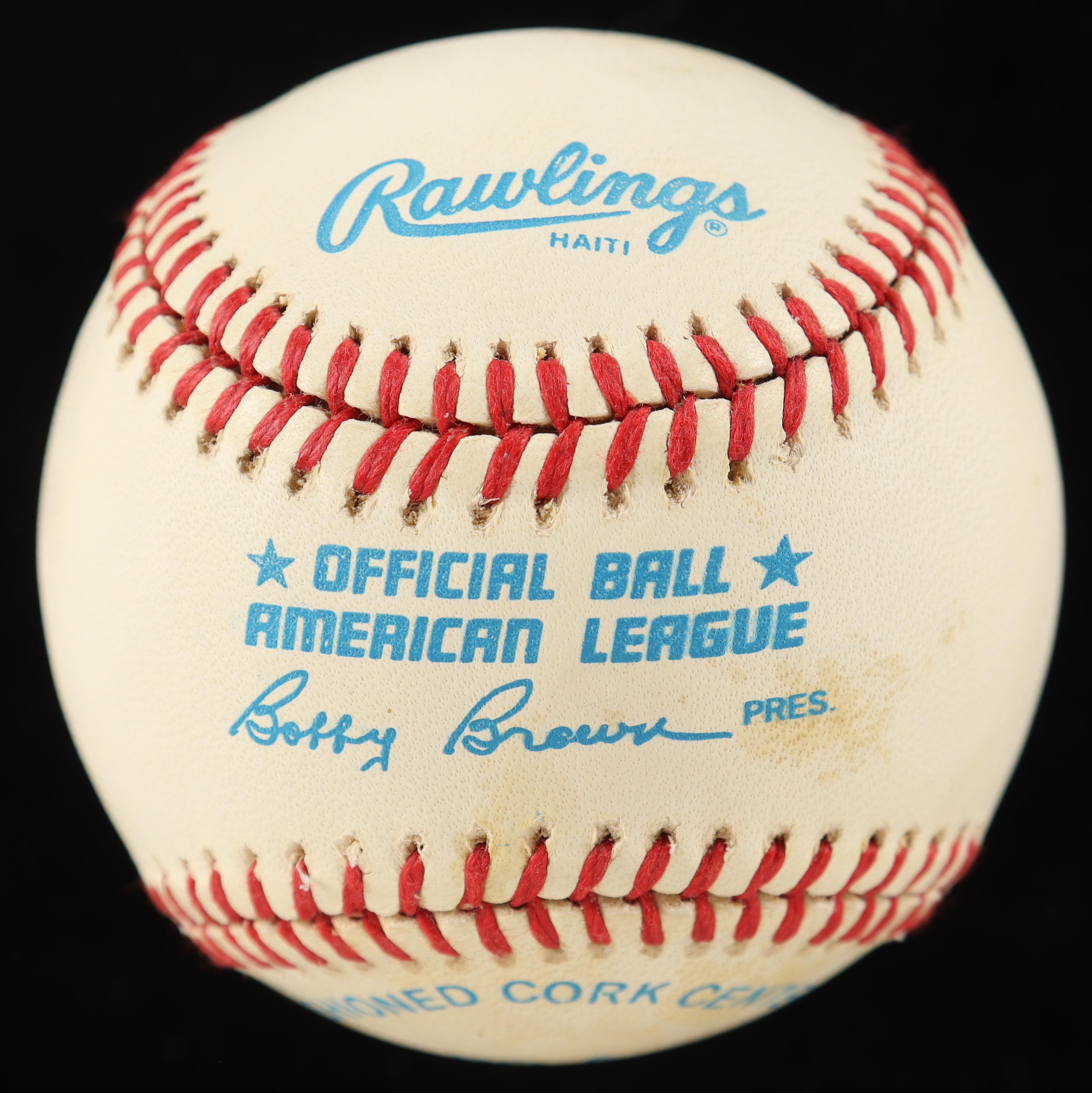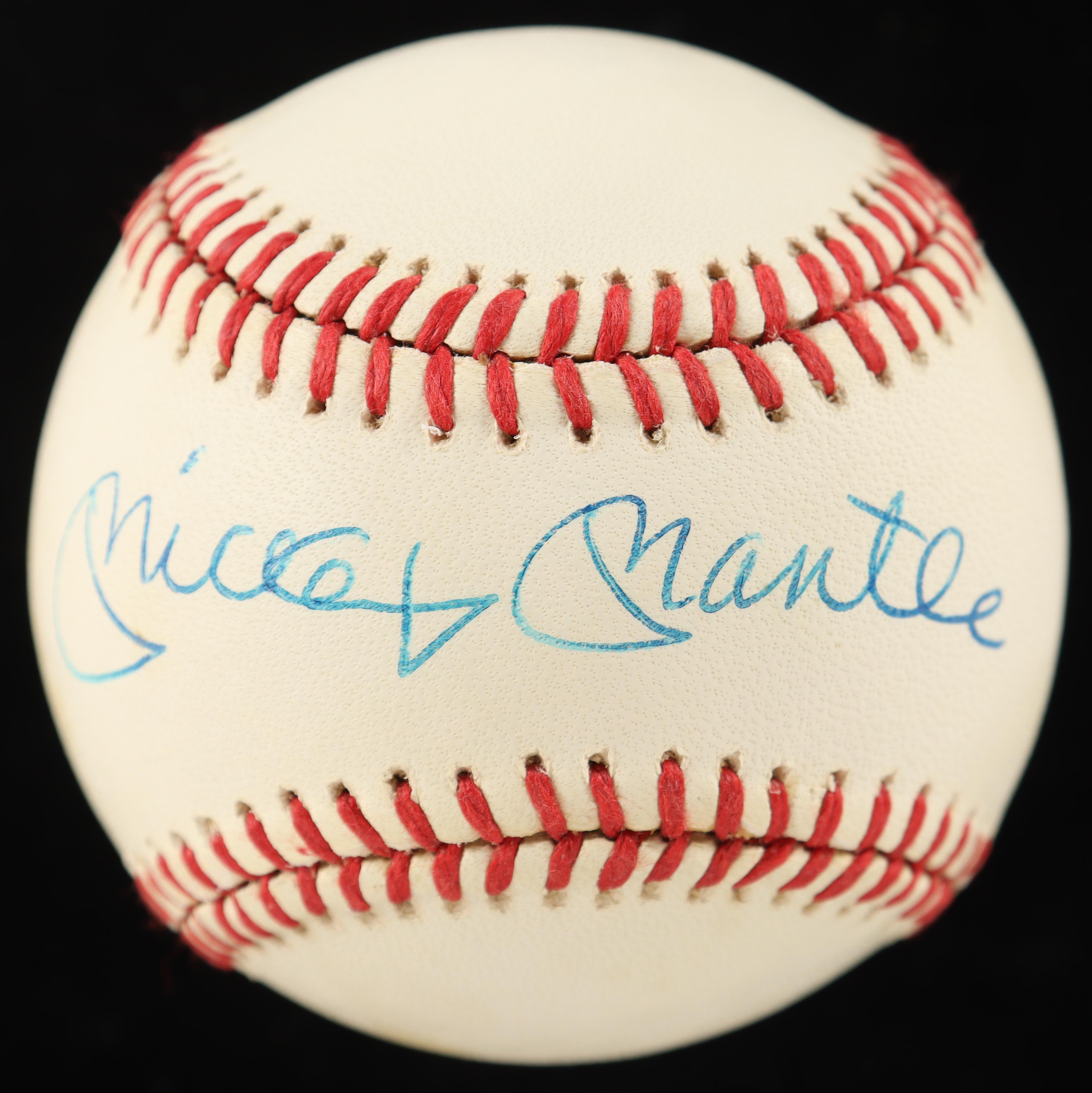Rawlings Official American League baseball has been hand-signed by Mickey Mantle (D. 1995, New York Yankees, HOF).