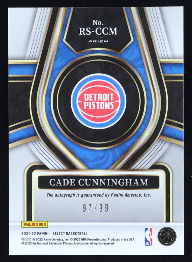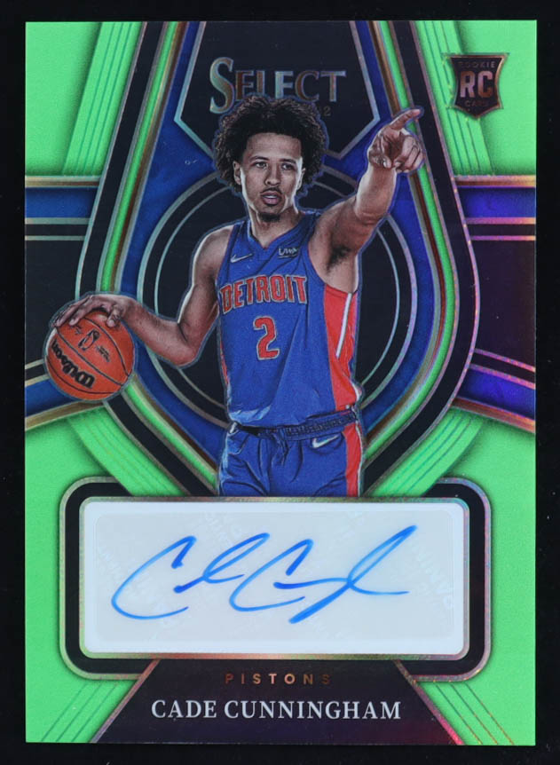 Cade Cunningham 2021-22 Panini Select Rookie Signatures Green Prizm #RS-CCM RC #97/99