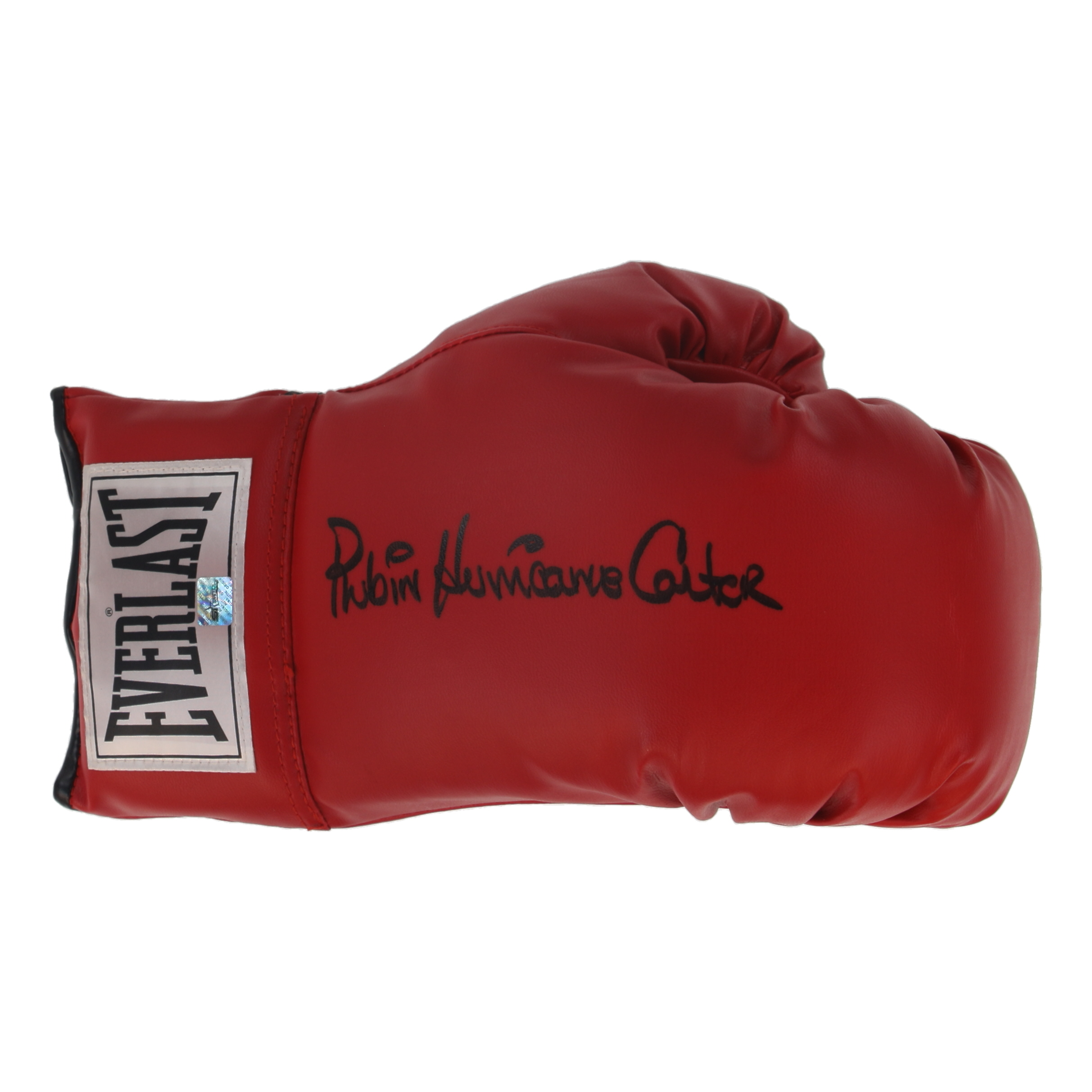 Right-hand Everlast Boxing Glove has been hand-signed by Rubin "Hurricane" Carter (D. 2014).
