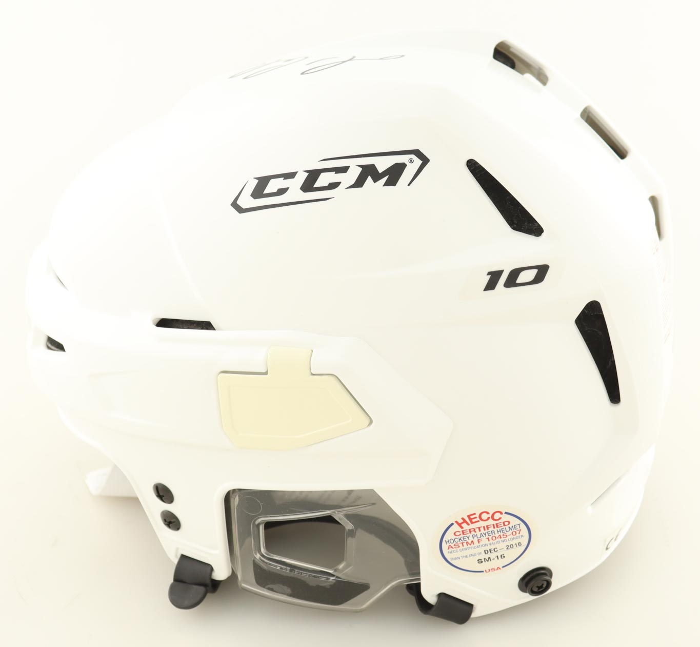 NHL full-sized white hockey helmet. Hand-signed by Mario Lemieux (Pittsburgh Penguins).