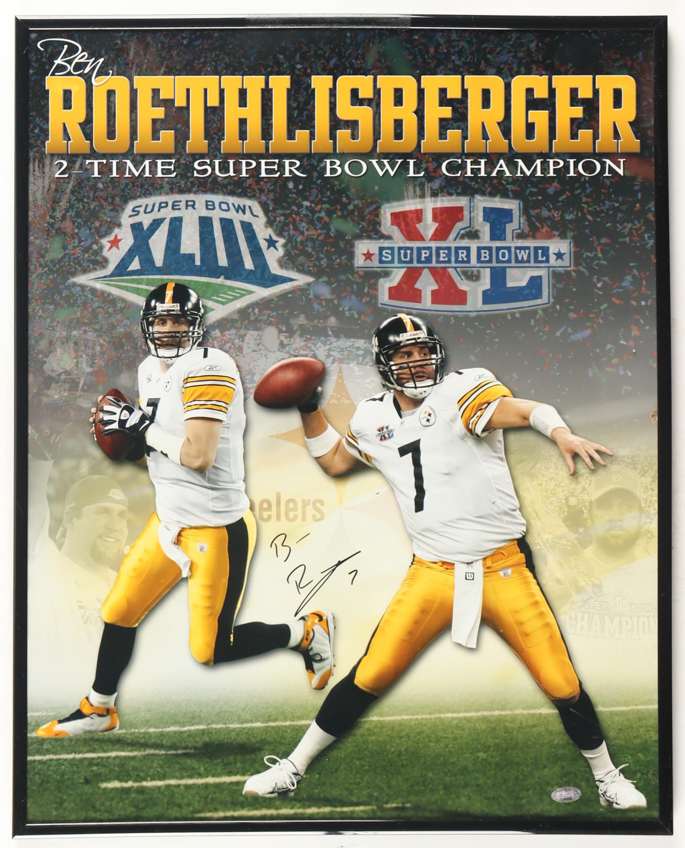 Custom frame measures approximately 16" x 20" in size. Hand-signed by Ben Roethlisberger (Pittsburgh Steelers).