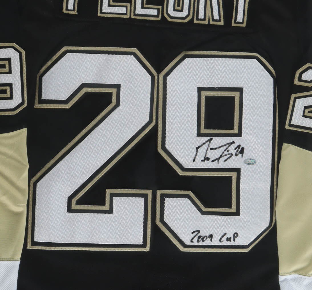 Marc-André Fleury Signed Custom Framed Jersey Display Inscribed "2009 Cup" (SportsMemorabilia)