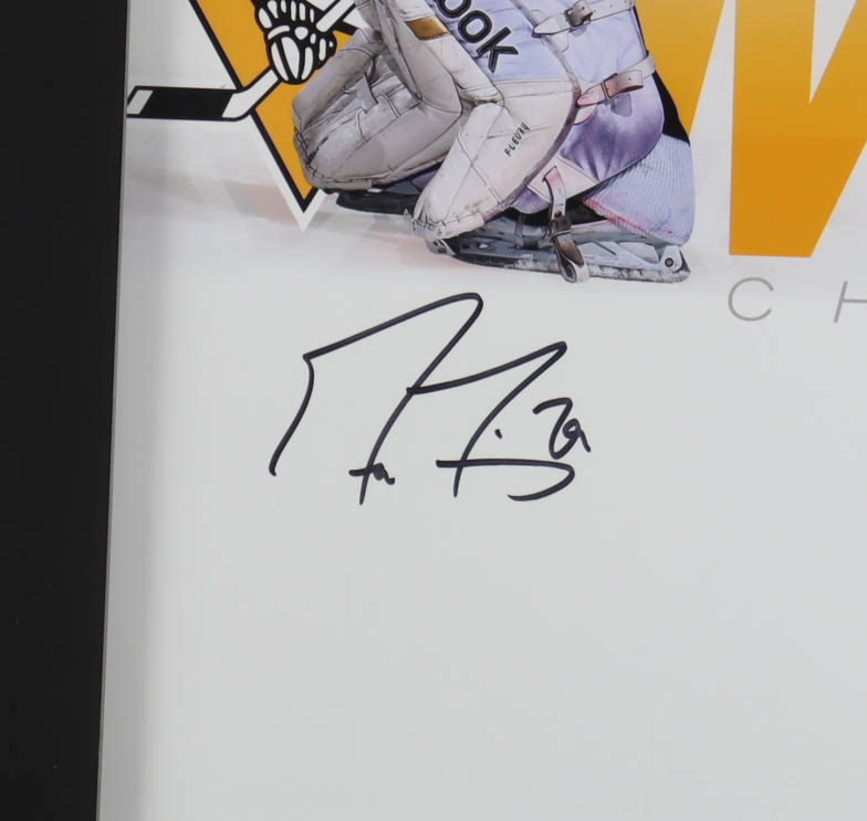Custom frame measures approximately 23.5" x 27" in size. The display features a Limited Edition # 2 / 30 photo hand-signed by Marc-Andre Fleury & Matt Murray With 2016 Piece Of Game Net.