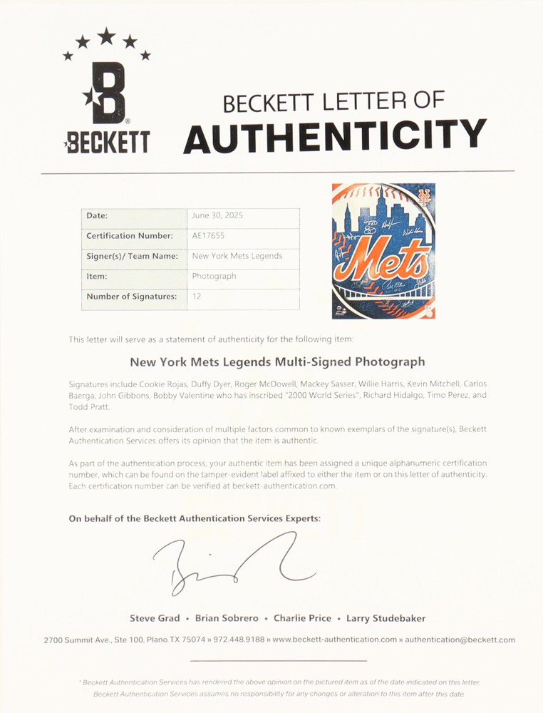 Mets 16x20 Poster Signed by (12) Mets Legends with Cookie Rojas, Roger McDowell, Willie Harris, John Gibbons (Beckett)
