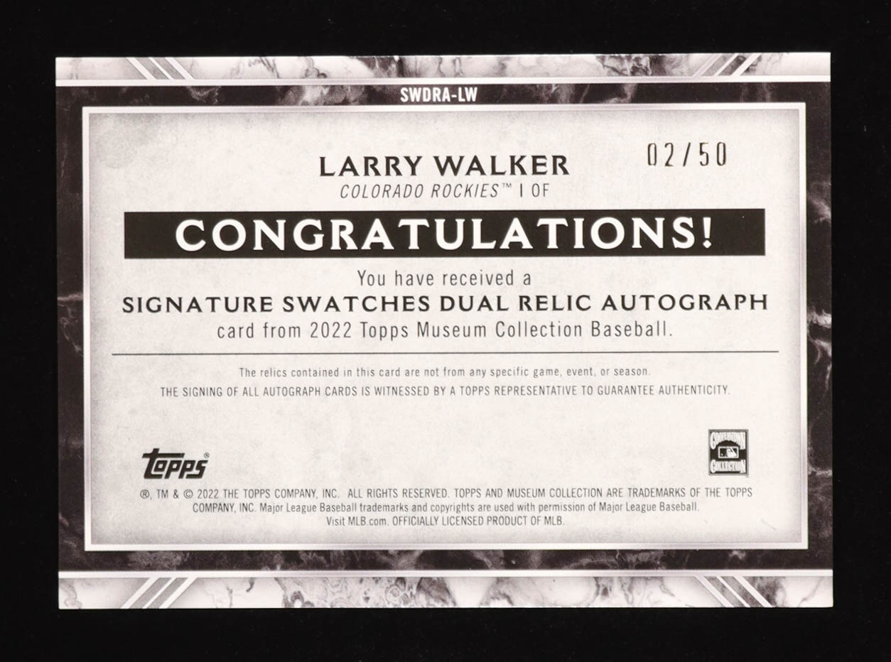Larry Walker 2022 Topps Museum Collection Signature Swatches Dual Relic Autographs Copper #SWDRALW #02/50