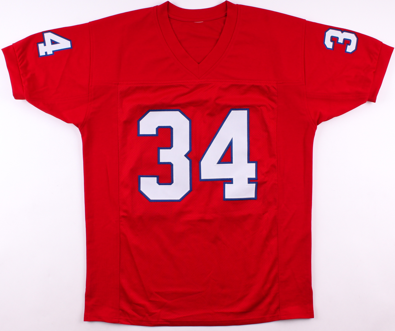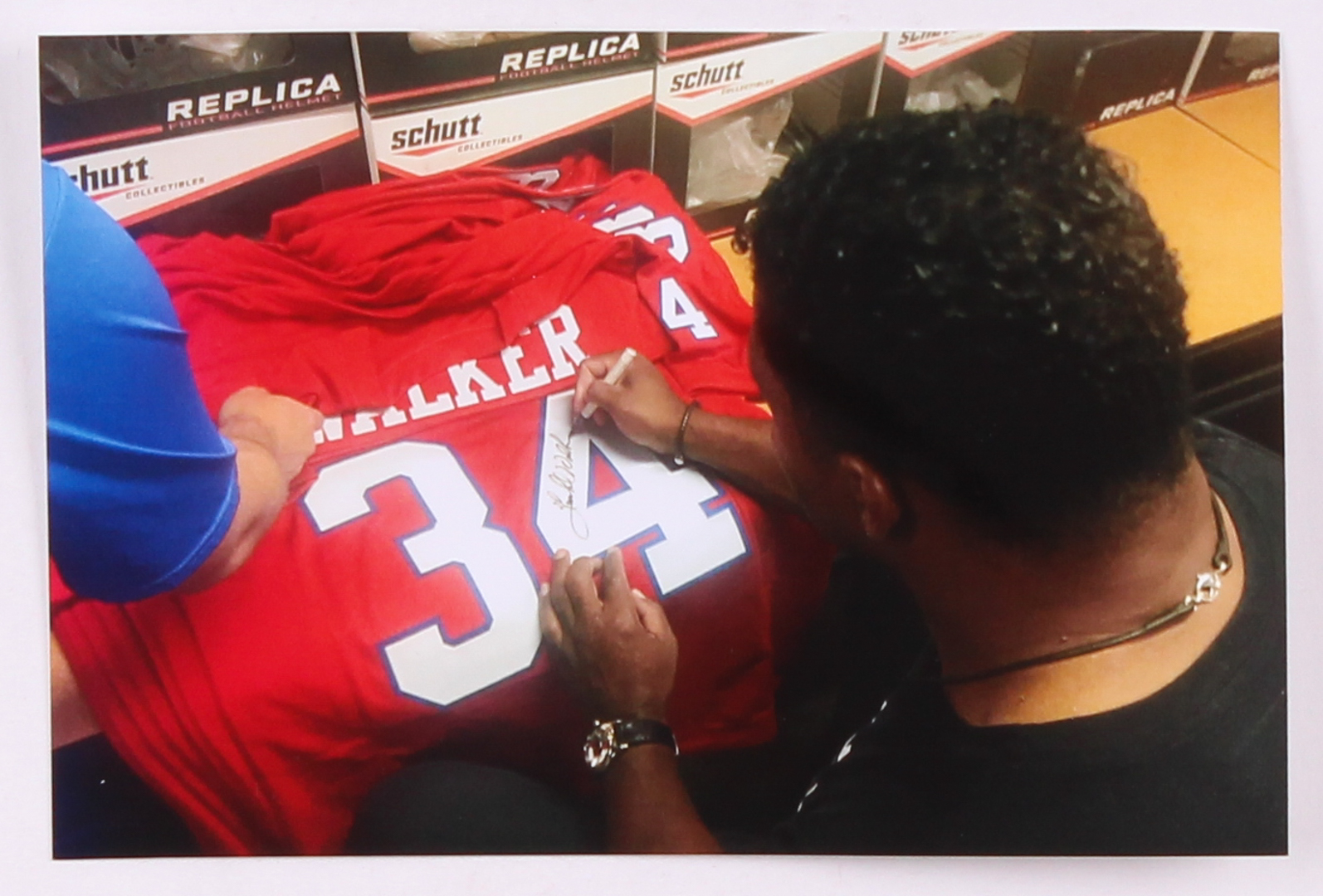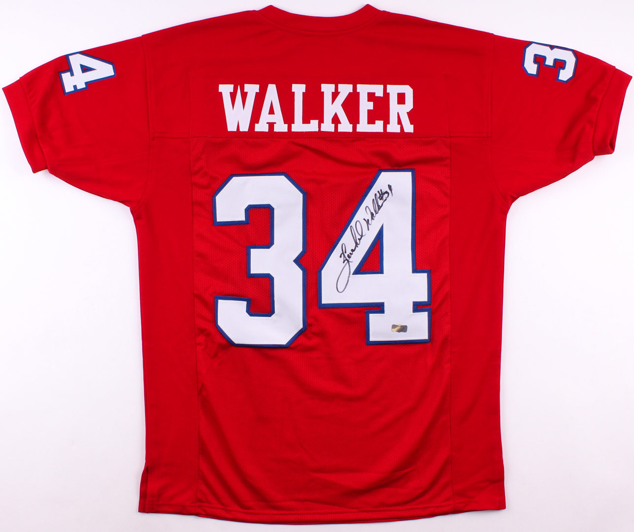 Custom On-field style jersey. Everything is sewn on, size XL. Hand-signed in black felt-tip pen by Herschel Walker (Eagles).
