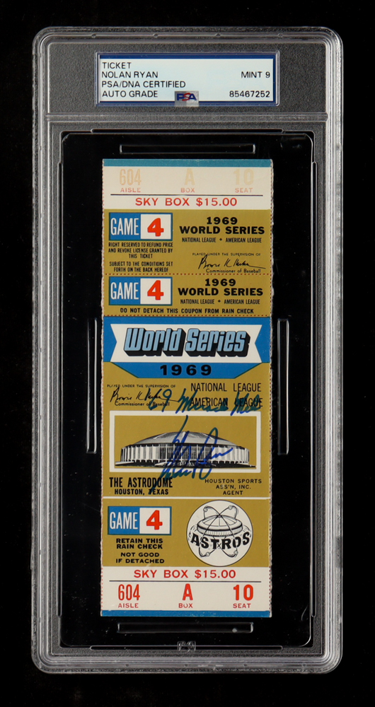 Nolan Ryan Signed 1969 World Series Original Game Ticket Inscribed "'69 Miracle Mets" (PSA | Autograph Grade 9)