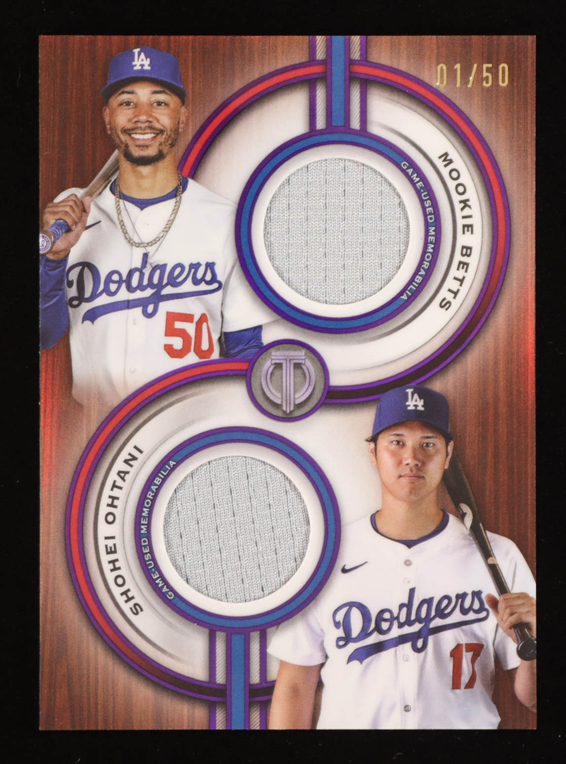Shohei Ohtani / Mookie Betts 2025 Topps Tribute Dual Player Relics Purple #TPDRBO #1/50