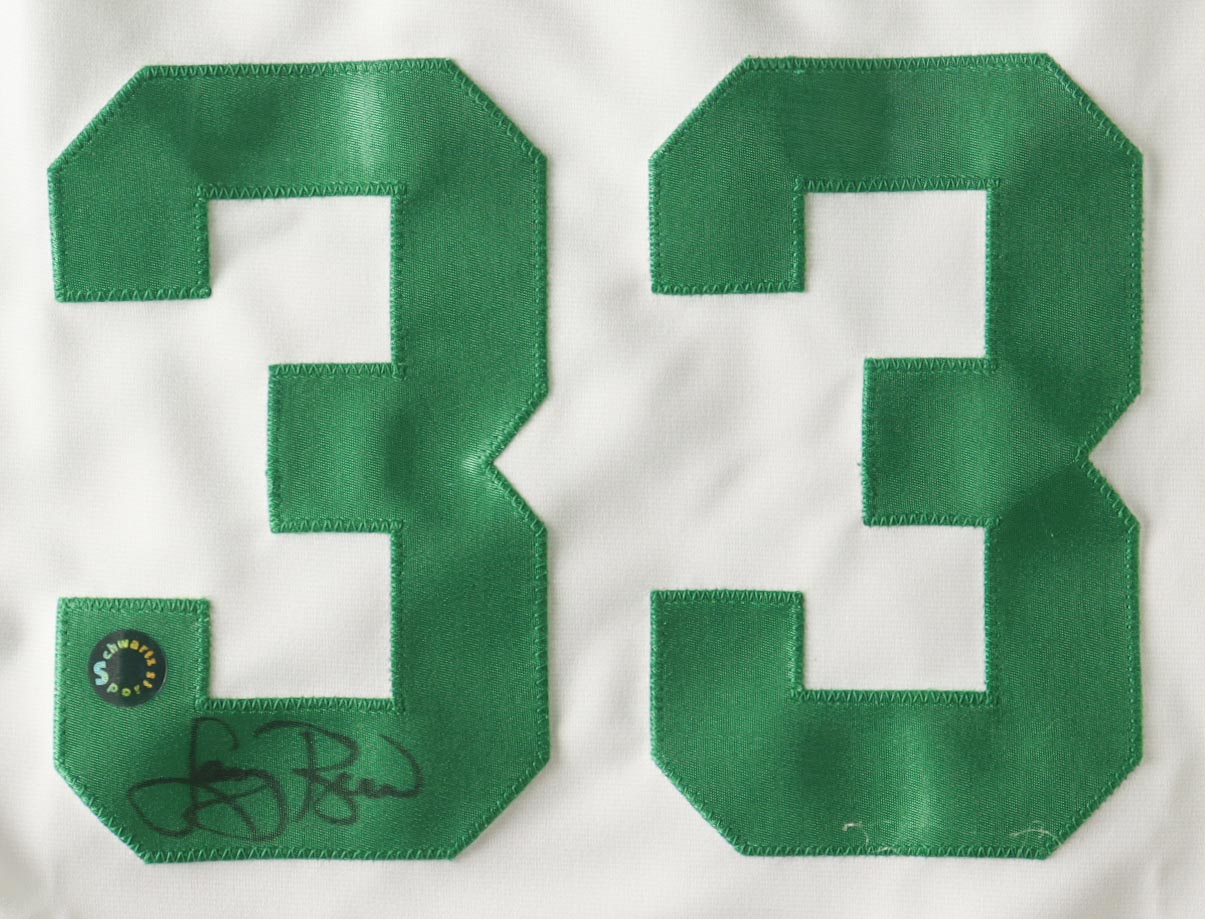 Custom frame measures approximately 23" x 35" x 3" in size and features a jersey that has been hand-signed by Larry Bird (Boston Celtics, HOF)