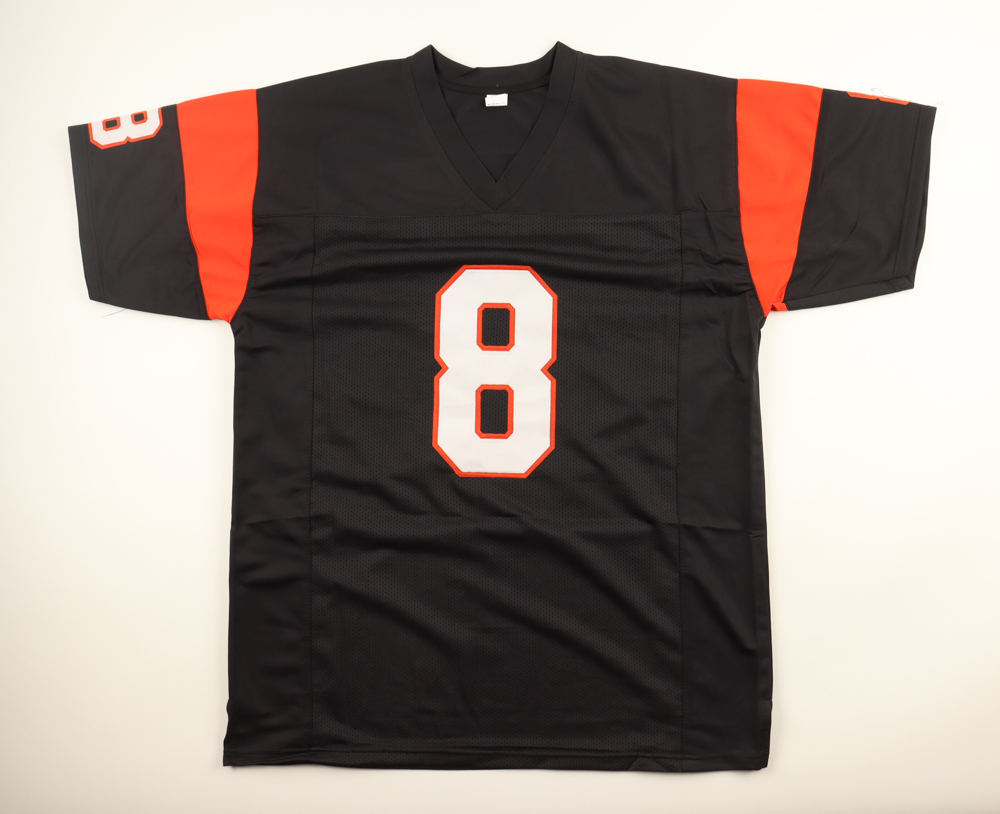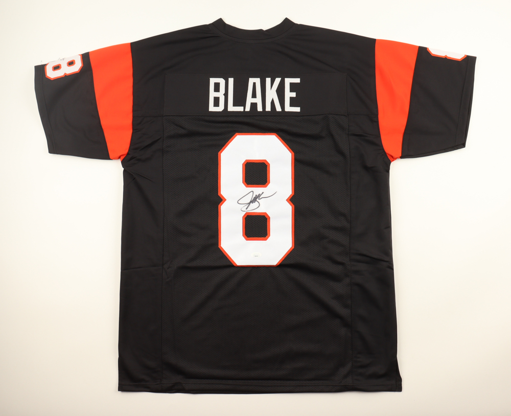 Custom jersey with everything sewn on, size XL. Hand-signed by Jeff Blake.