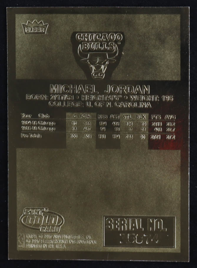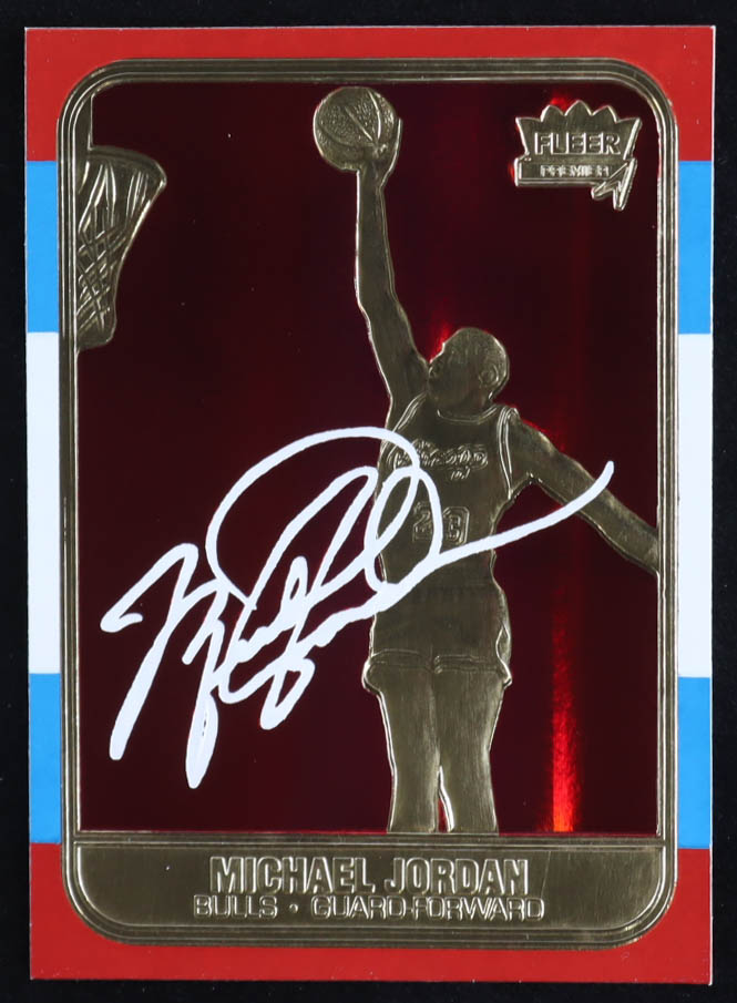 Michael Jordan 1997 Fleer Premier Signature Series Red Holo Refractor 23Kt Gold Card